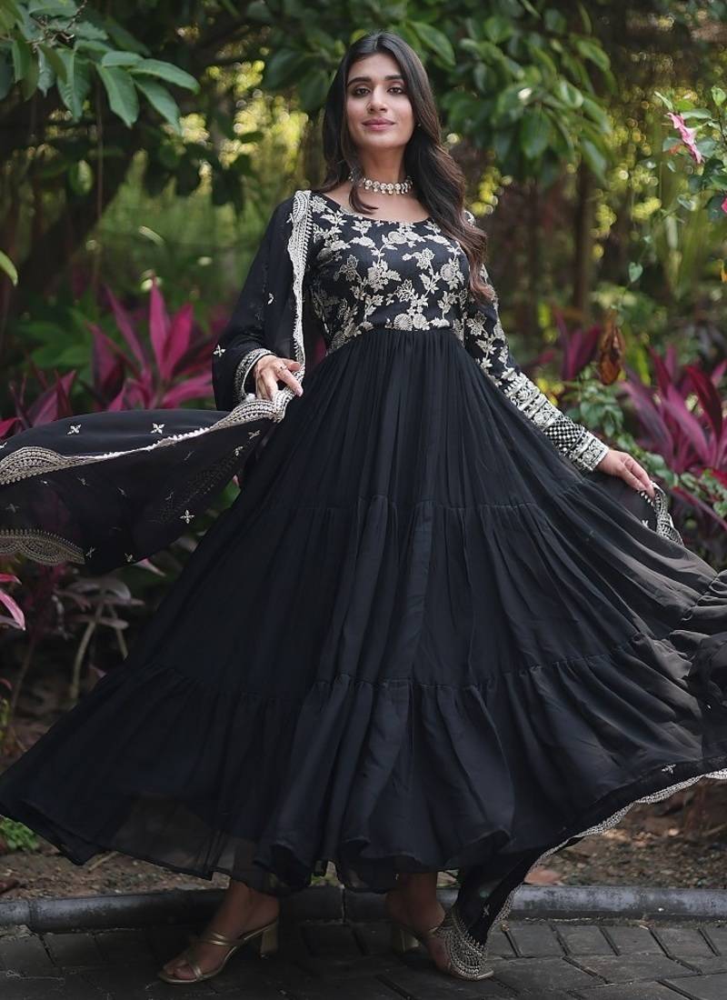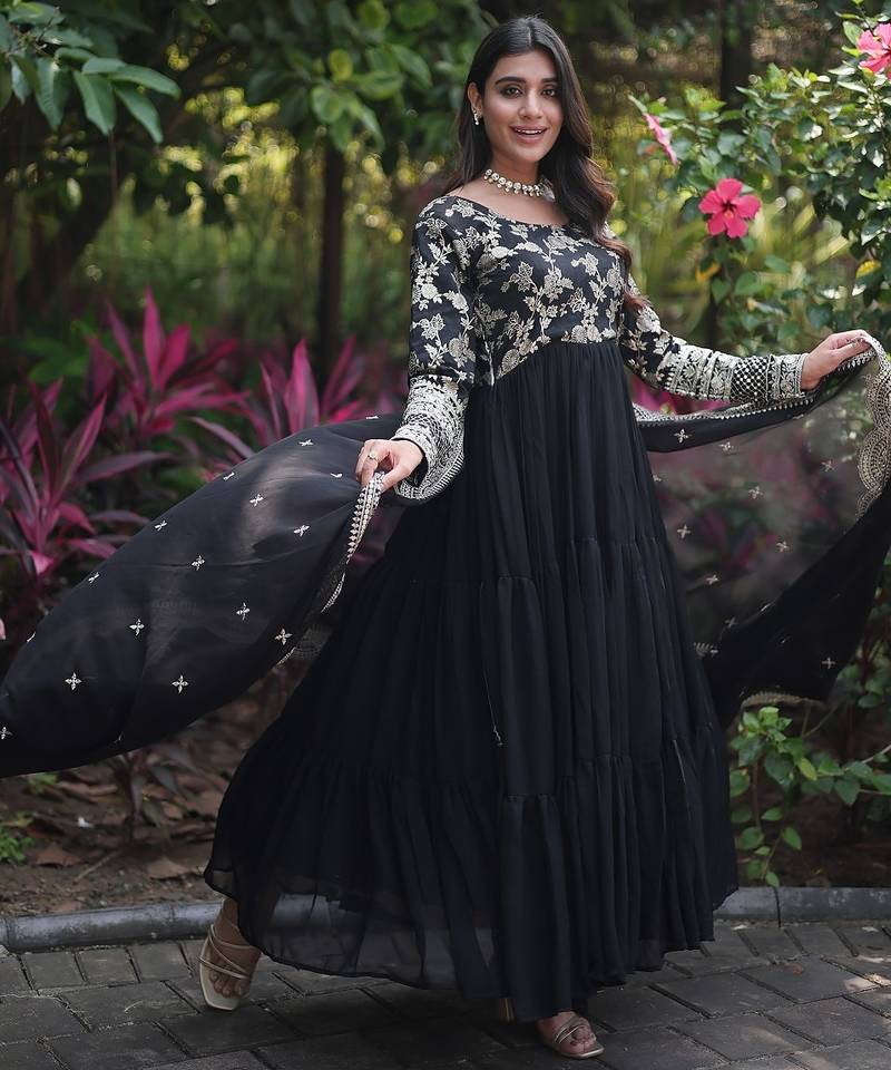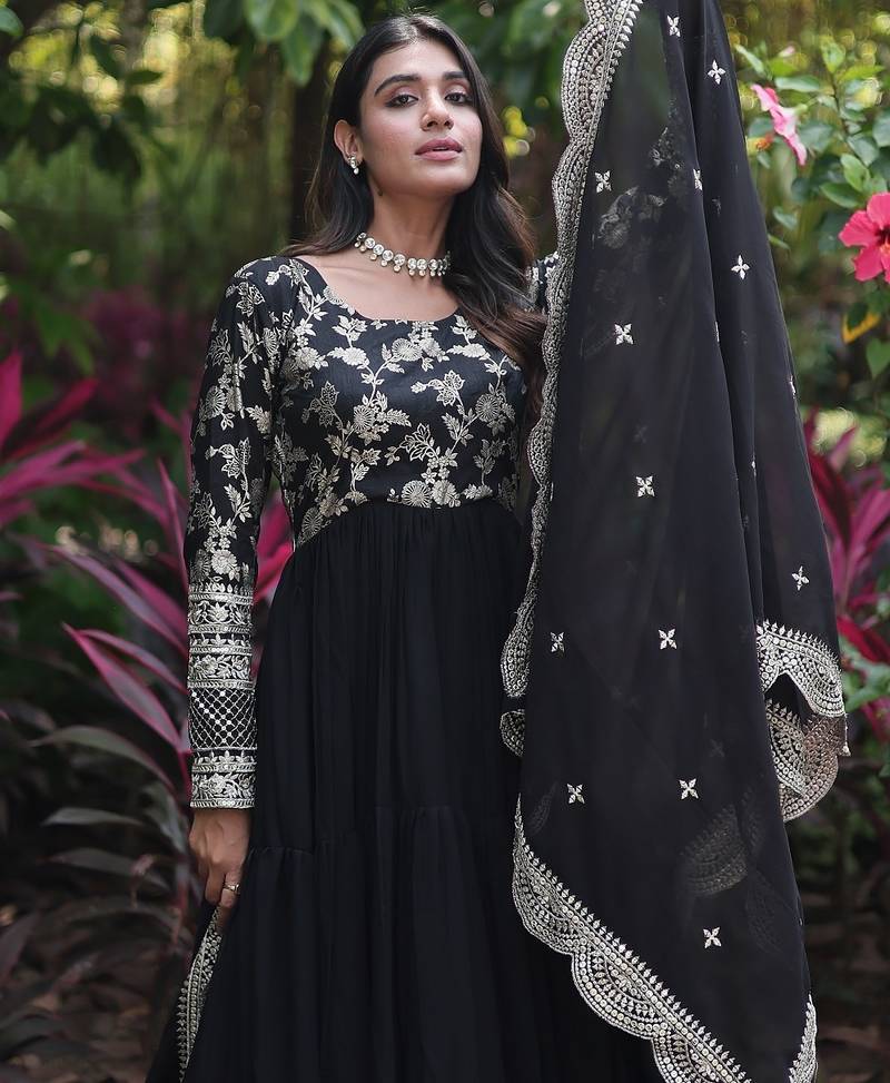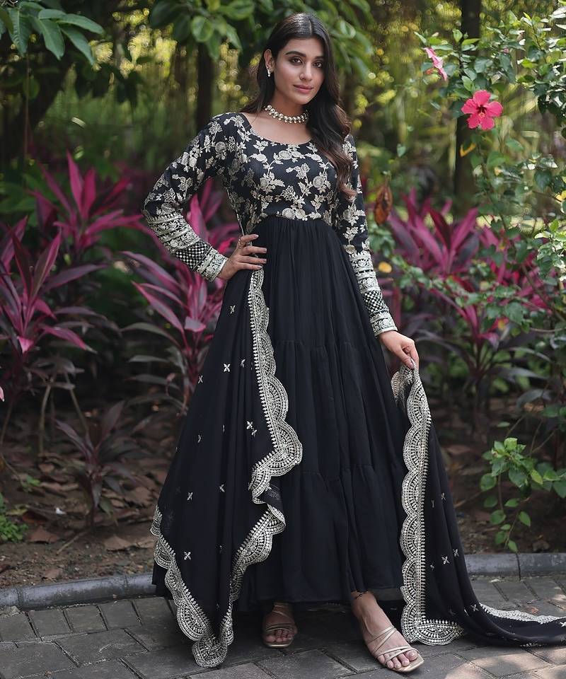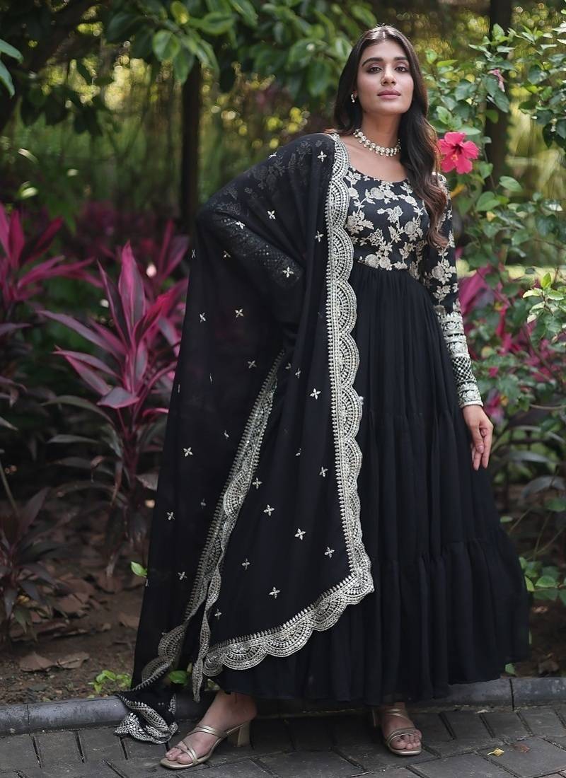 | Product Name | Black Color Jacquard Sequins Work Georgette Gown With Dupatta | |