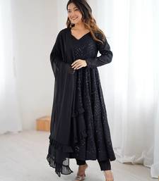 Black color lucknowi sequince thread work faux georgette anarkali set stitched