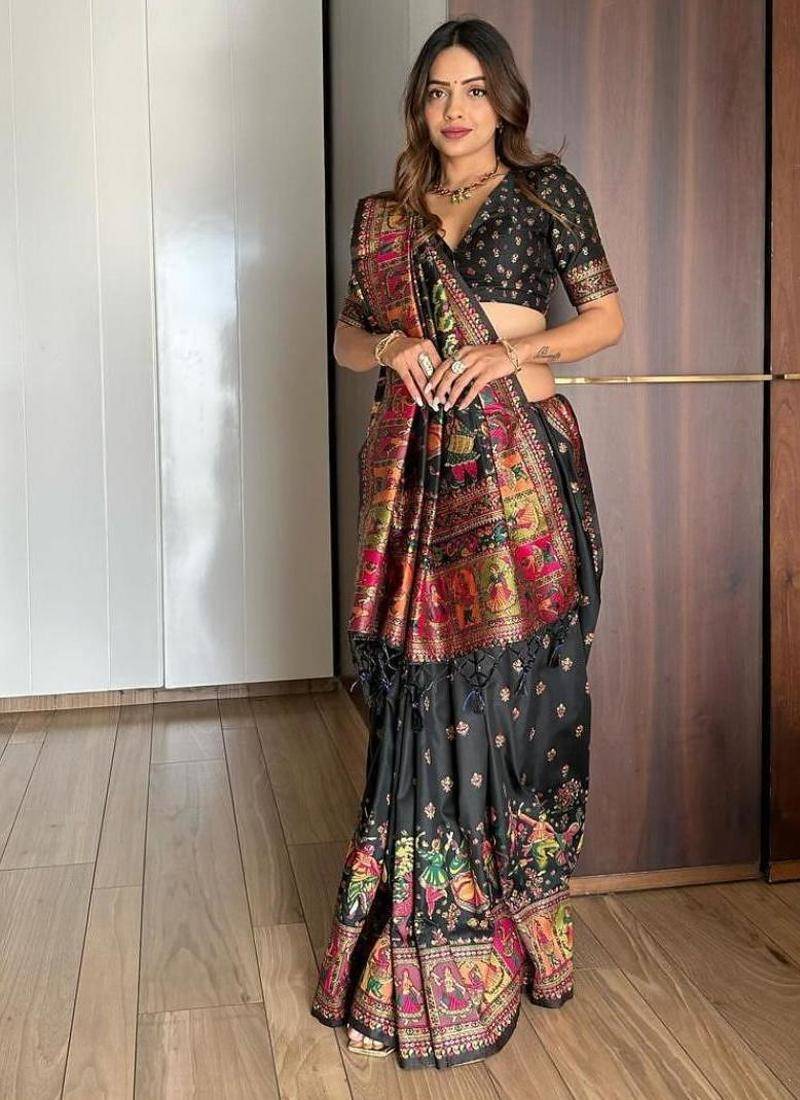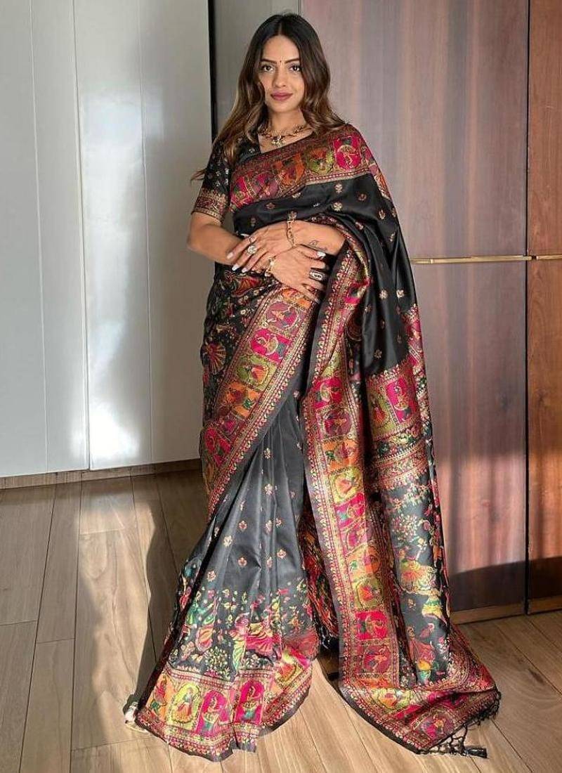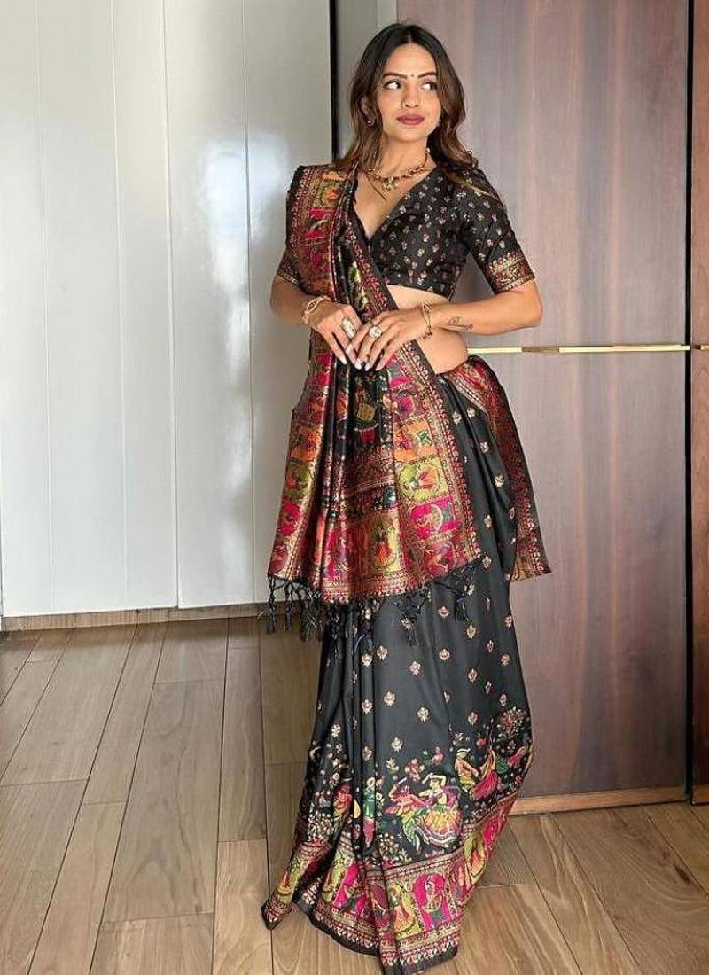 | Product Name | Black Color Pashmina Silk Kashmiri Meena Weaving Saree | |