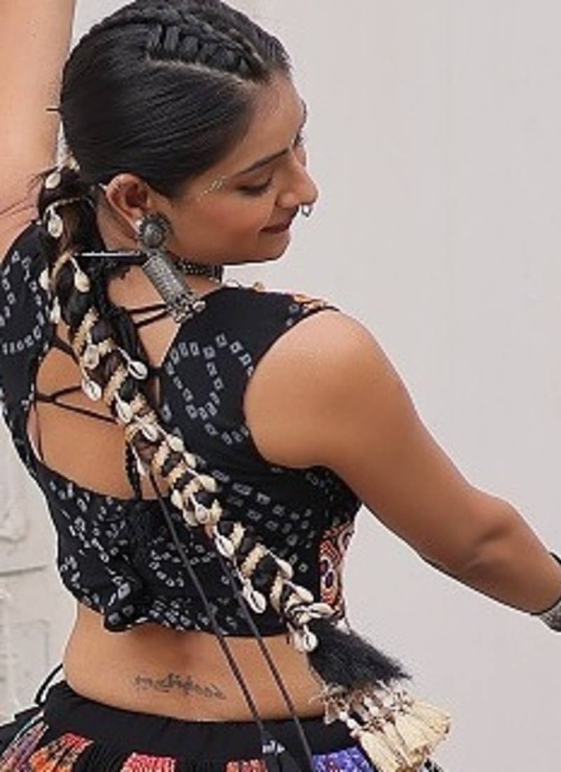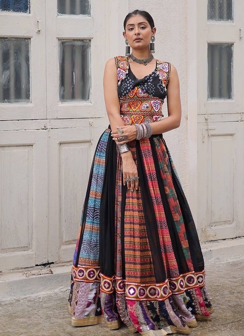 | Product Name | Black Color Print Gamthi Embroidered Work Lehenga Choli | |