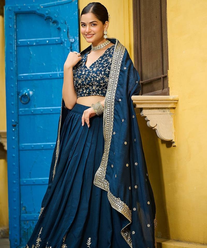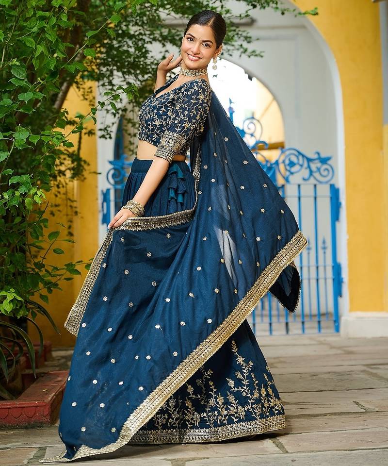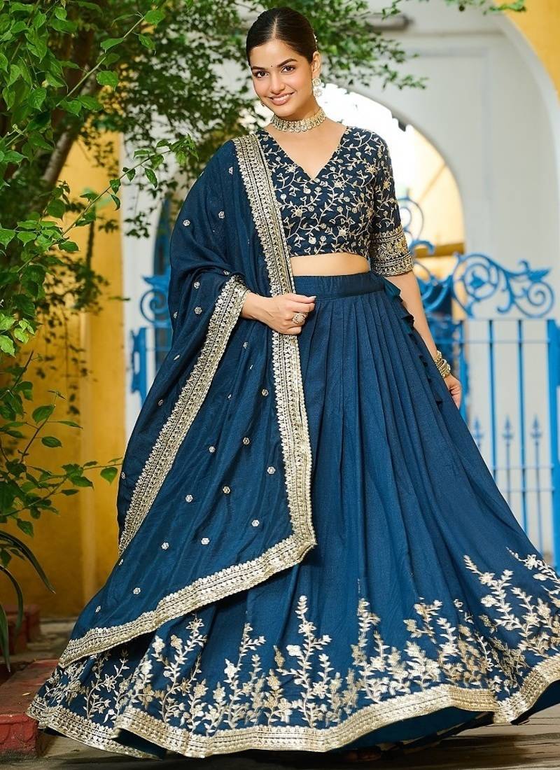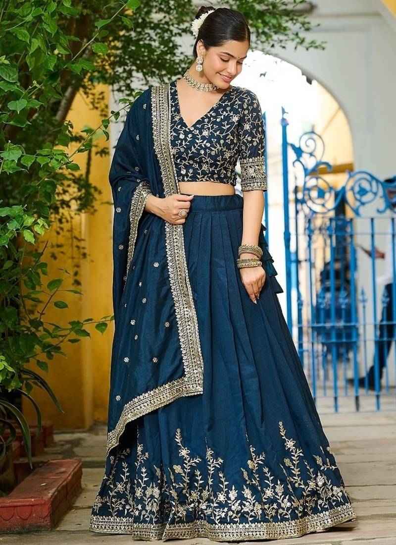 Blue color vichitra silk sequins embroidered lehenga choli with dupatta