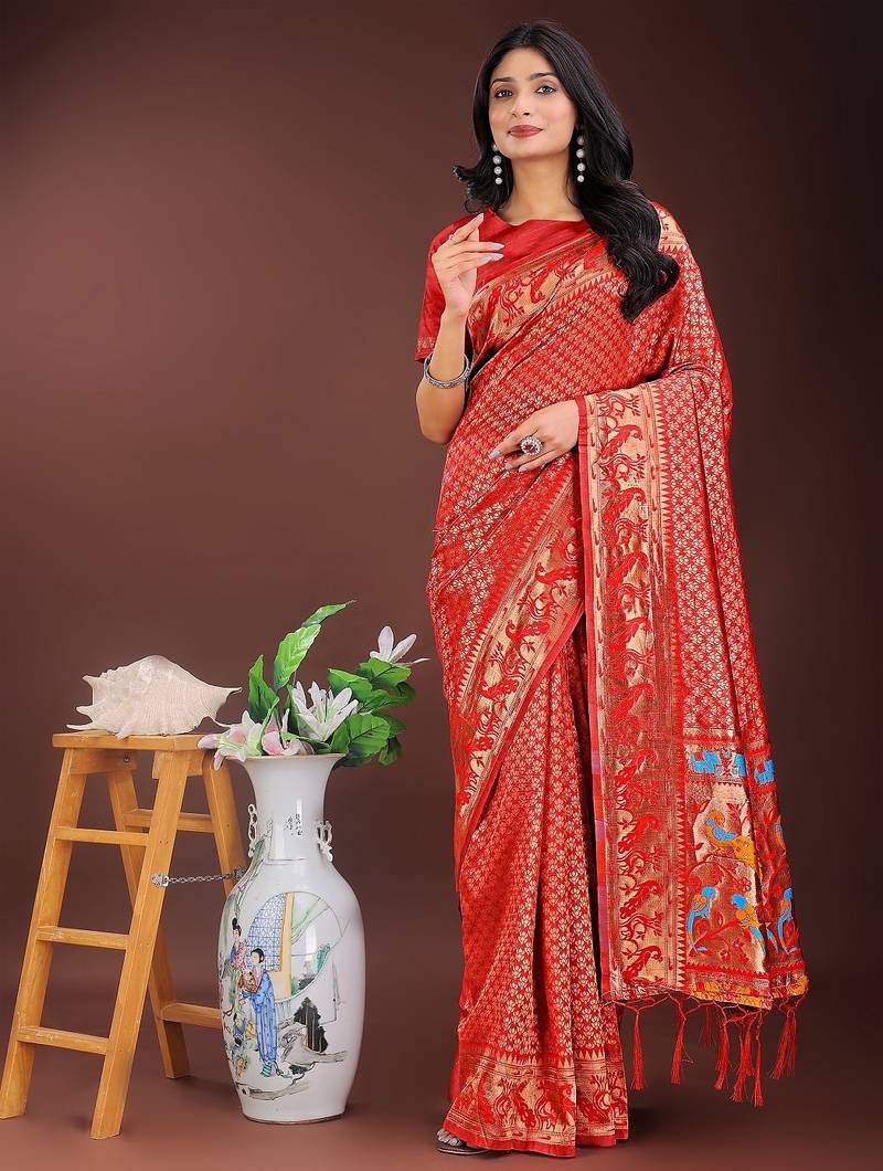 | Product Name | Red Color Woven Work Art Silk Wedding Saree | |