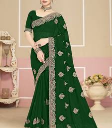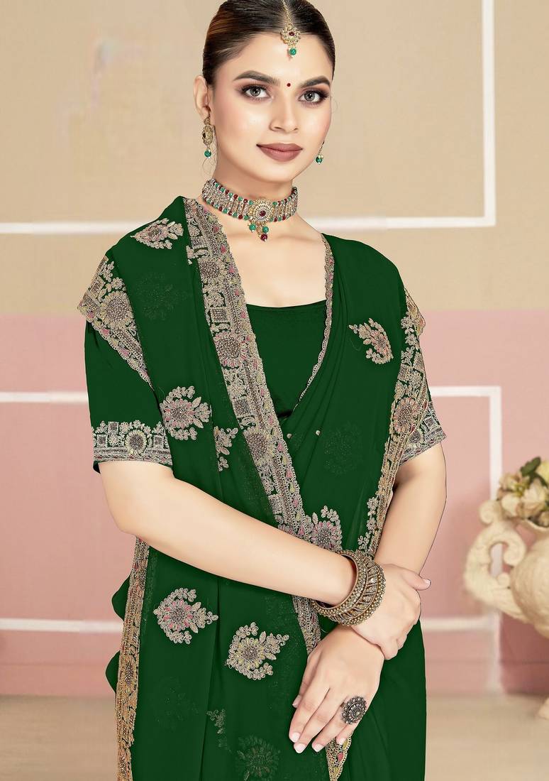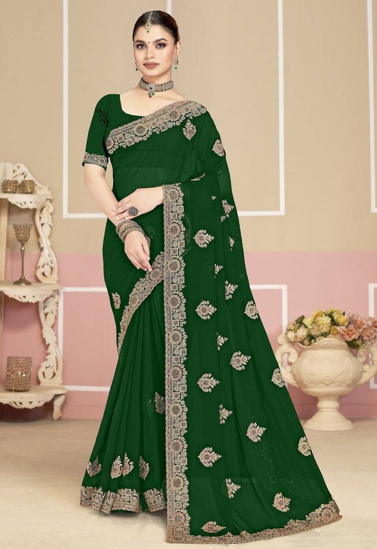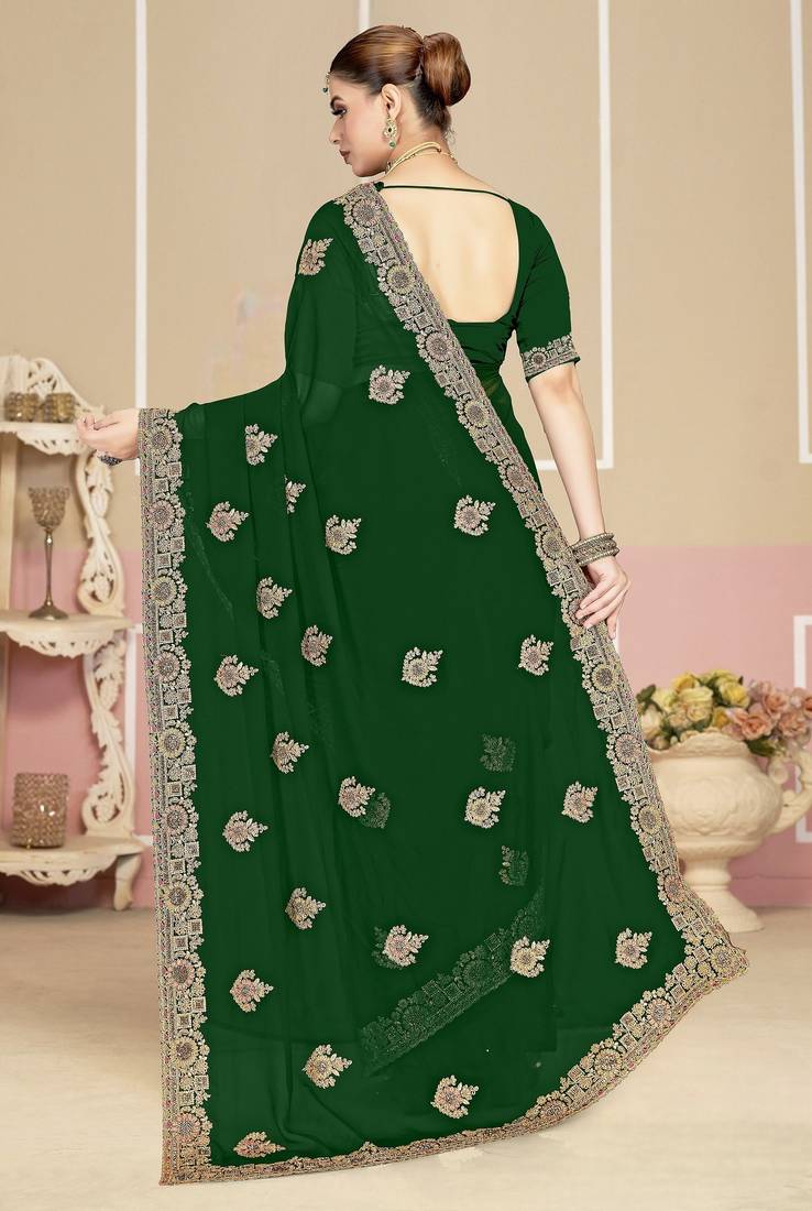 Botle green color zirkon work & codding embroidered georgette saree with blouse