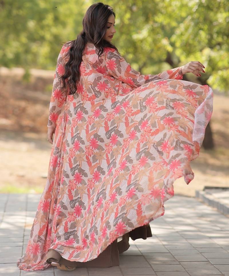 | Product Description | Designer Fancy Latest Stylish Party Wear Faux Georgette Crush Pleating Work Length 42 Waist 42 Inner Cotton 5 Mtr Flair Zip Attached Dori With Latkan Closure Convas Patta , Stitched Blouse Georgette Printed 40 User Can Alter Up To 44 ,V Neck Shrug Faux Georgette Digital Printed Flair Size 40 Stitched User Cal Ulter Up To 44 .Length 58 |