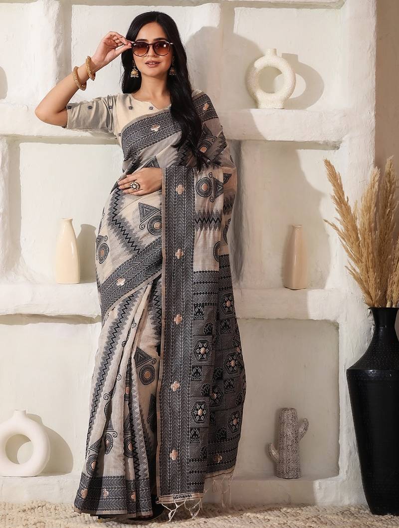 | Product Name | Cream & Black Color Linen Cotton Saree With Blouse | |