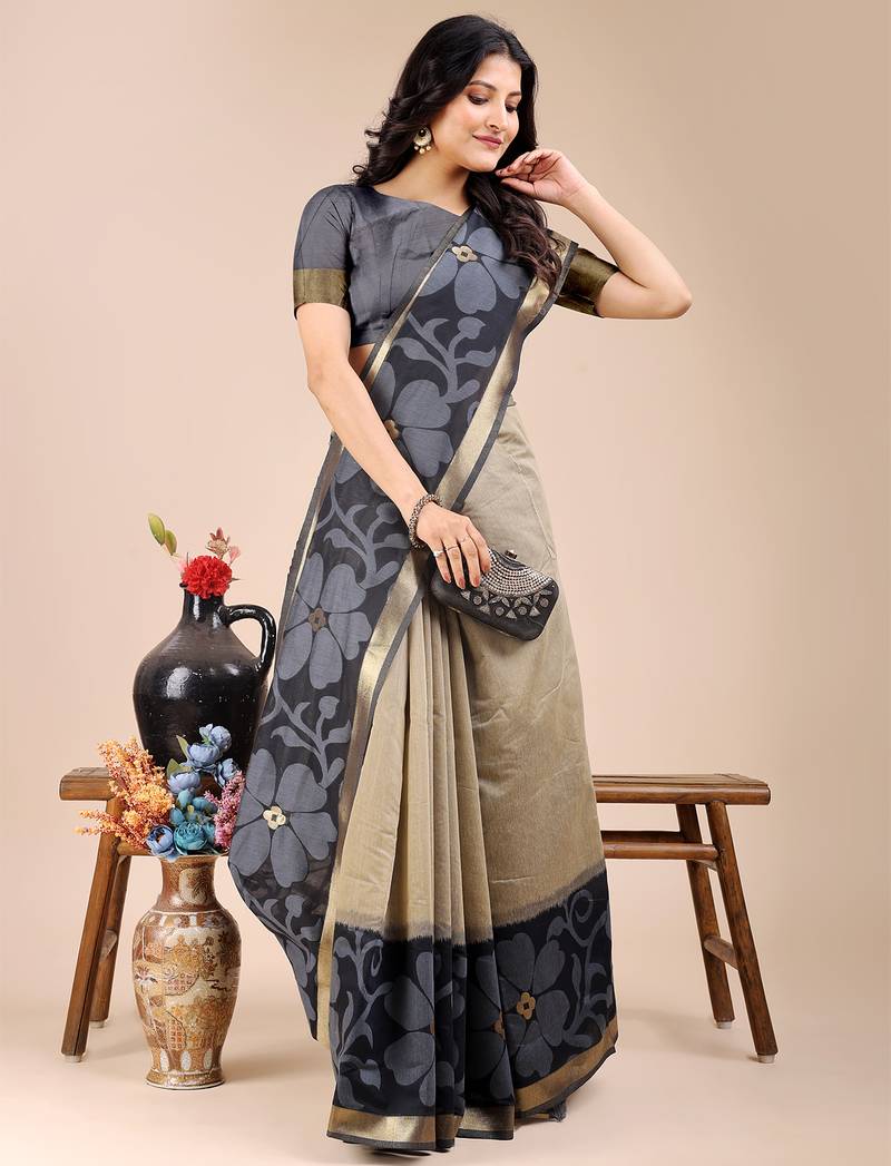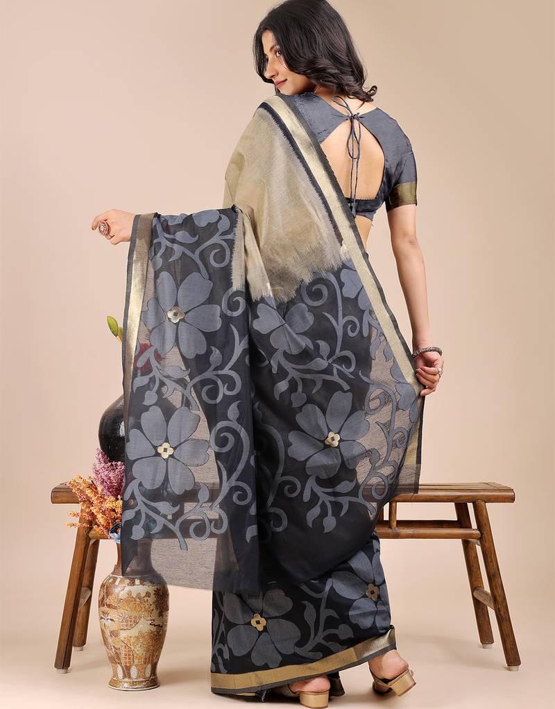 | Product Name | Cream & Black Color Woven Work Cotton Saree | |