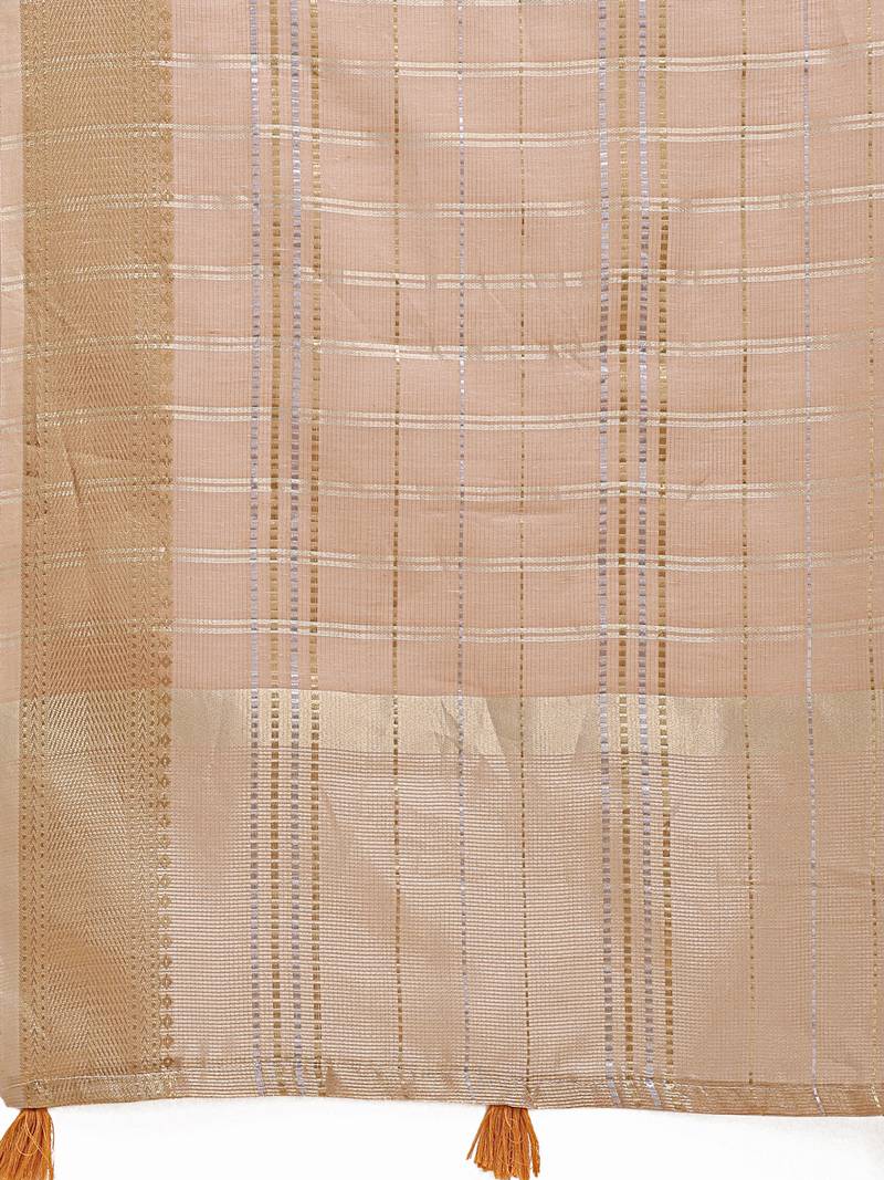 | Product Name | Cream Color Checks Solid Zari Border Orgenza Saree | |