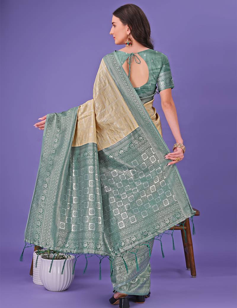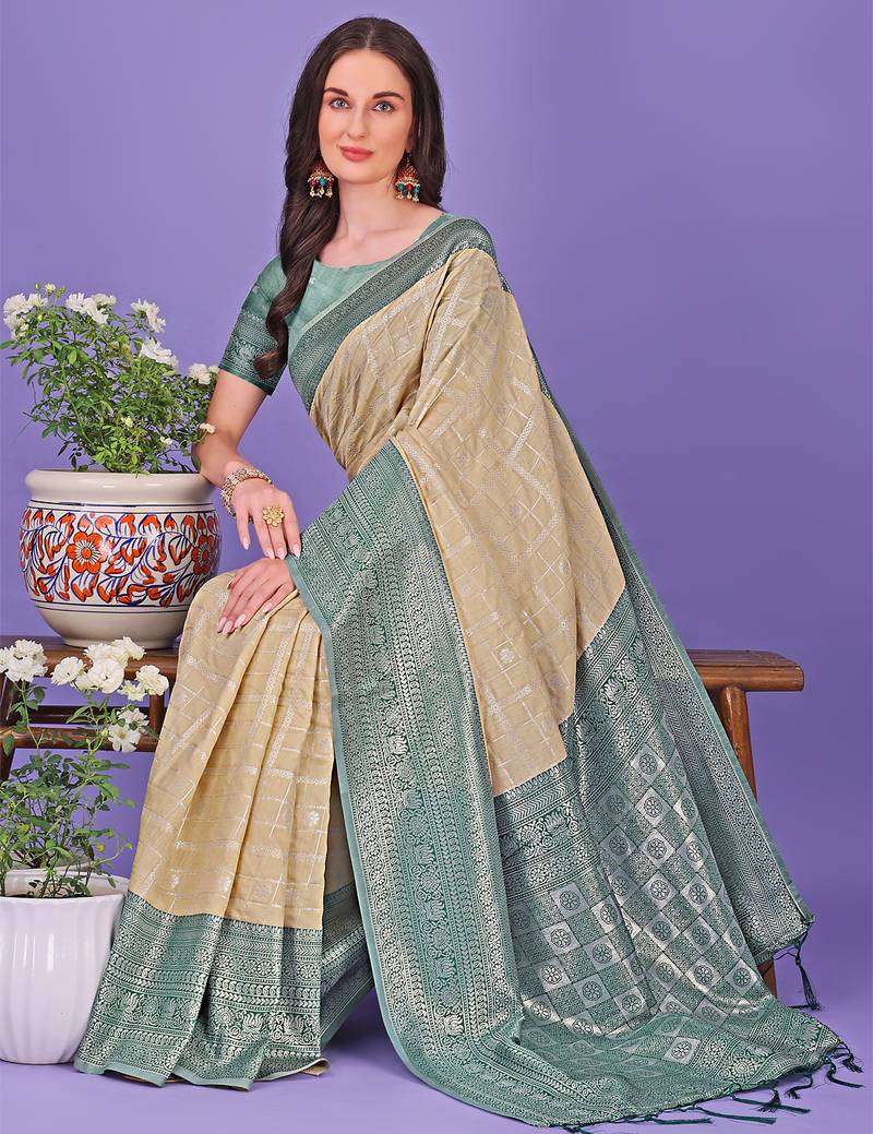| Product Name | Cream Color Woven Lichi Art Silk Blend Saree | |