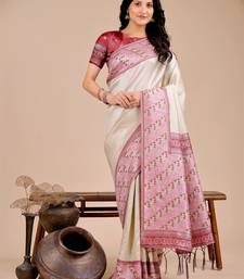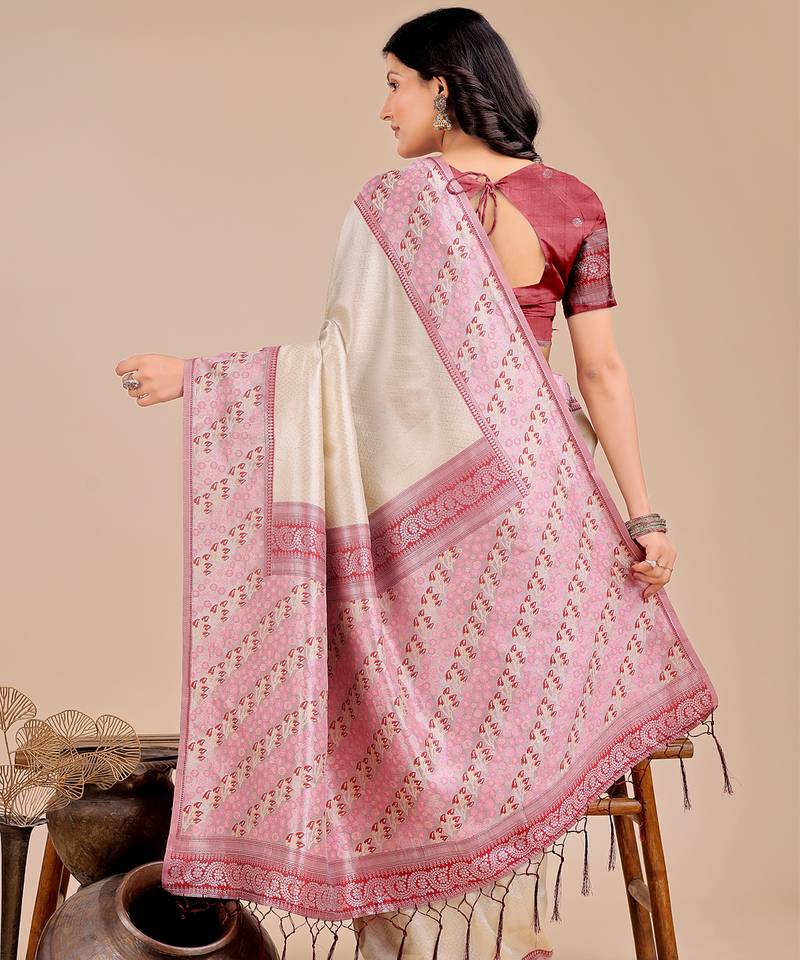 Cream color woven art silk saree with blouse