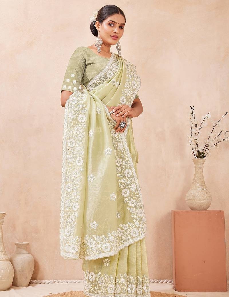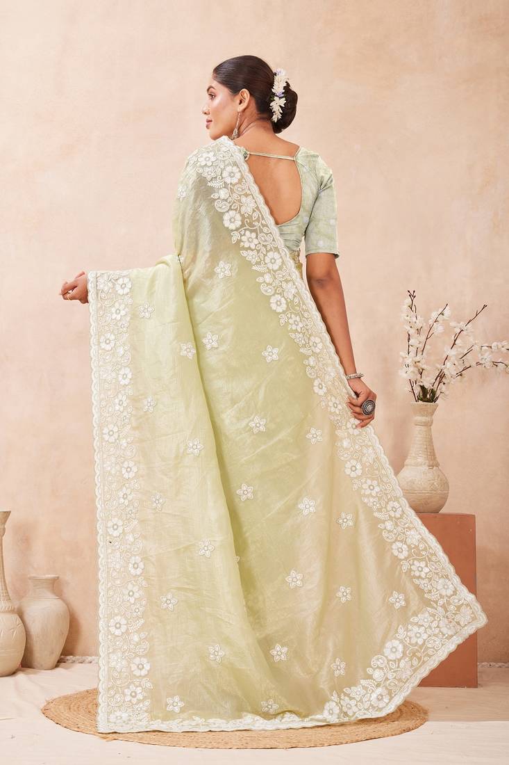 | Product Name | Dusty Pista Color Resham & Sequins Embroidered Gold Crush Silk Blend Saree | |