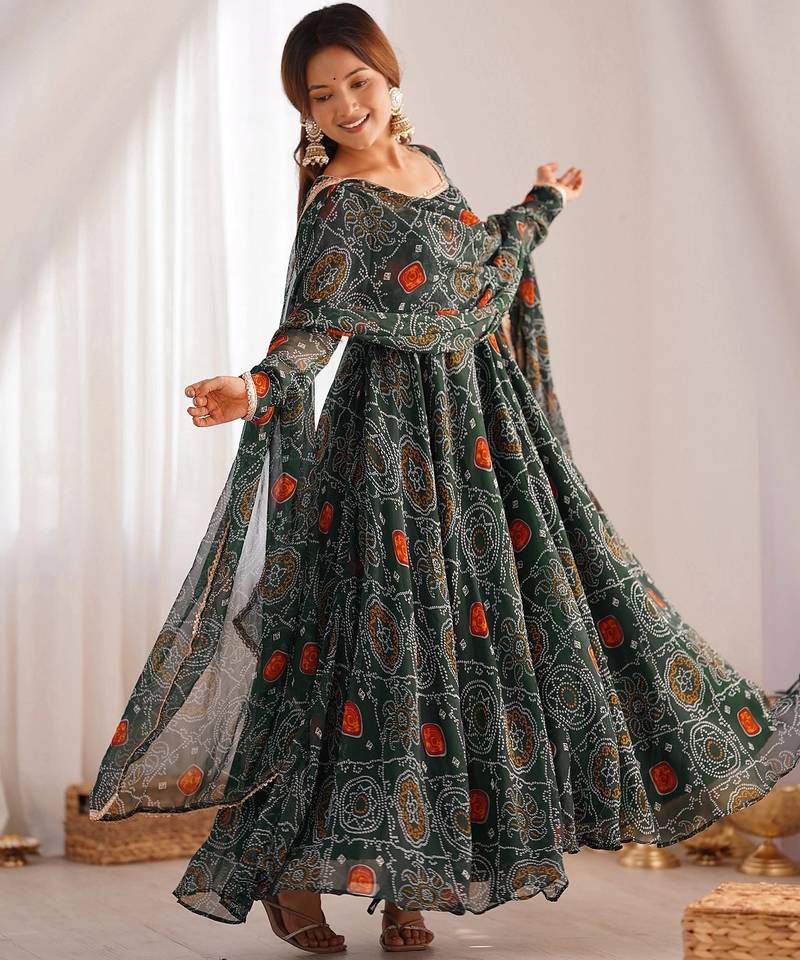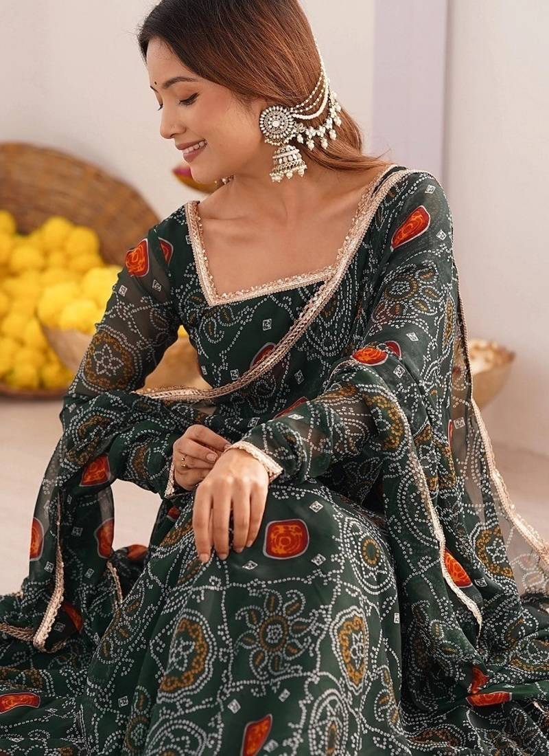 | Product Name | Green Color Lightweight Bandhej Printed Chiffon Anarkali Set | |