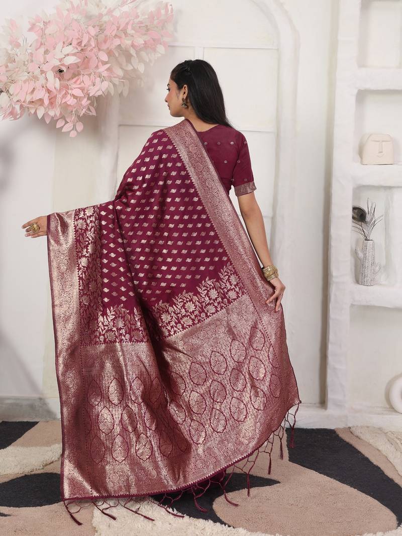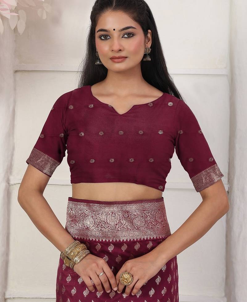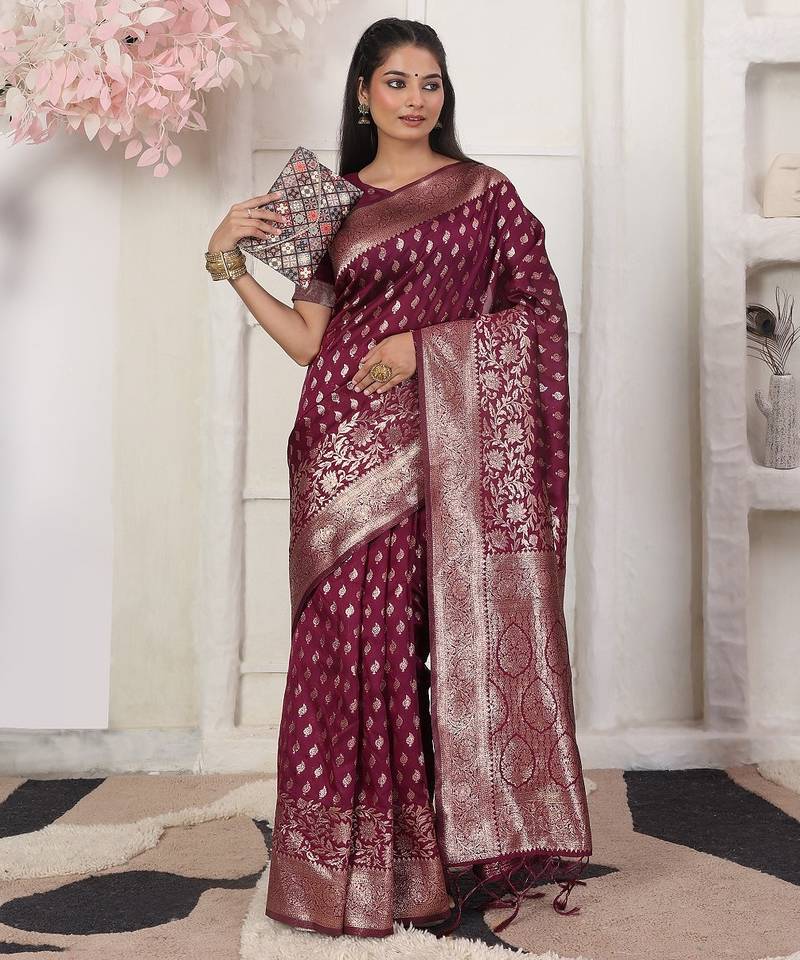 | Product Name | Maroon Color Woven Work Lichi Art Silk Blend Saree | |