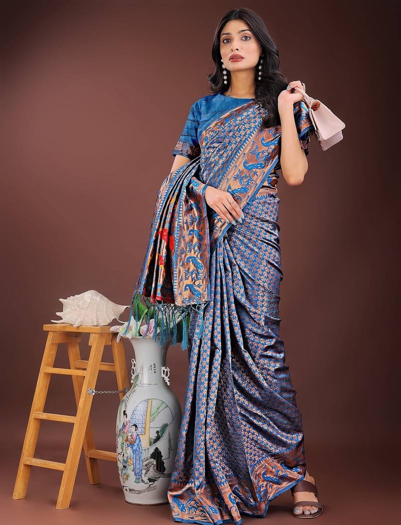 | Product Name | Blue Color Woven Work Art Silk Wedding Saree | |