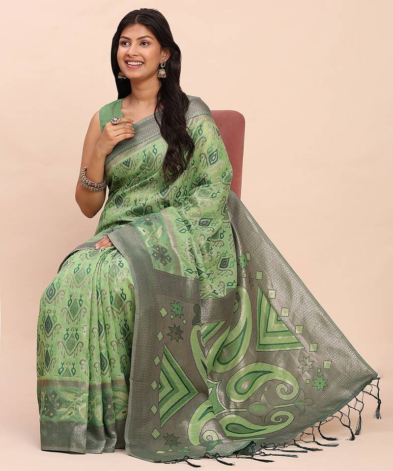 | • | Saree | : | Color- Green / Fabric- Linen |