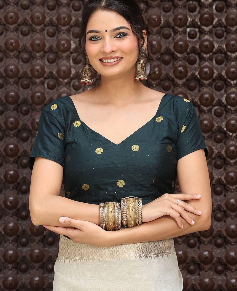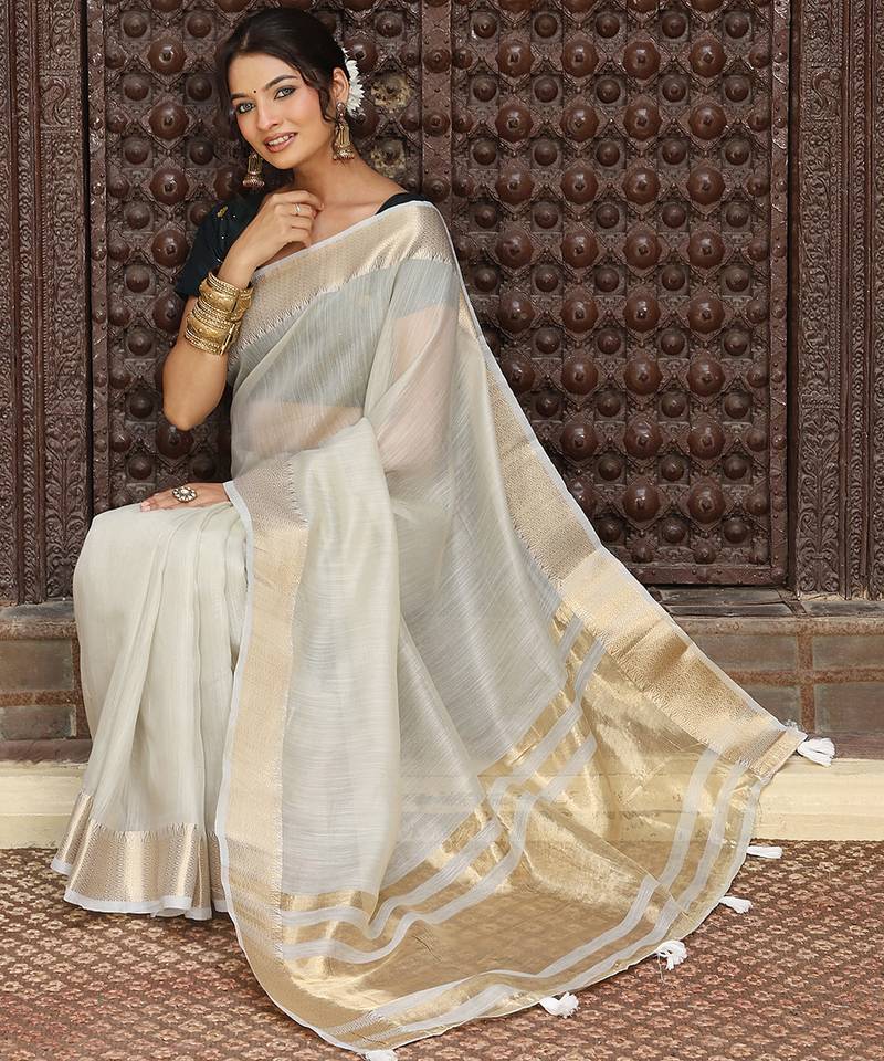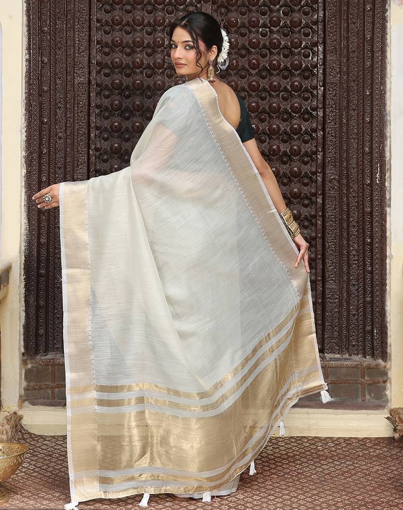 Linen Cotton Woven Zari Work Beautiful Women's Exclusive Casual Formal Official Party Wear Traditional South Indian Base Saree With Un Stitched Blouse