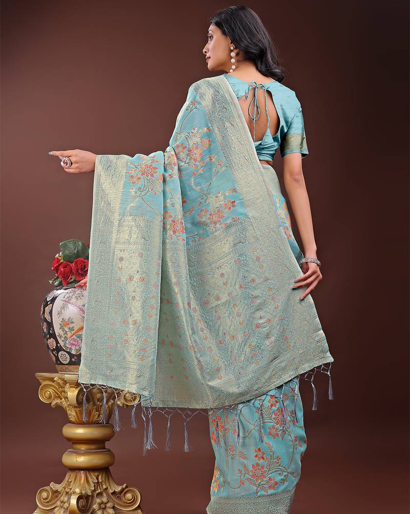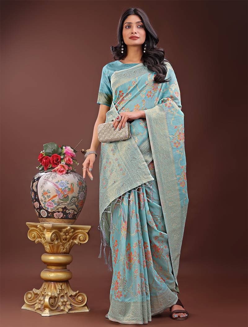 | Product Name | Light Blue Color Woven Linen Cotton Saree | |