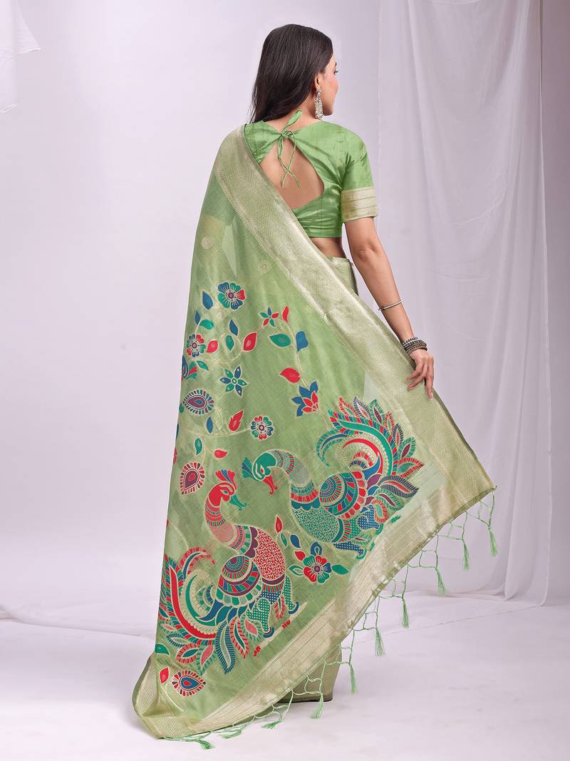 | Product Name | Light Green Color Linen Cotton Woven & Printed Linen Cotton Saree | |