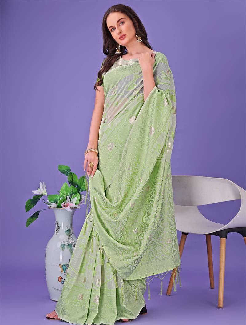 | Product Name | Light Green Color Linen Cotton Woven Saree With Blouse | |