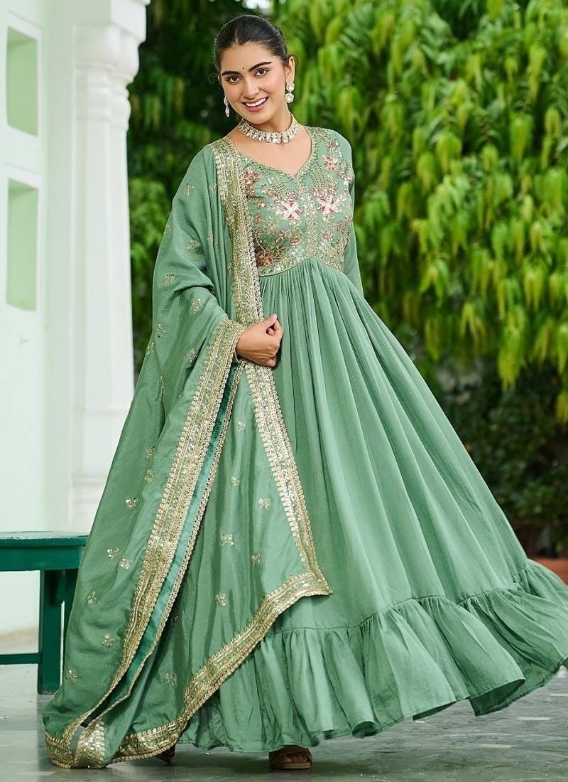 | Product Name | Light Green Color Vichitra Silk Zari Thread Embroidered Gown Dupatta | |