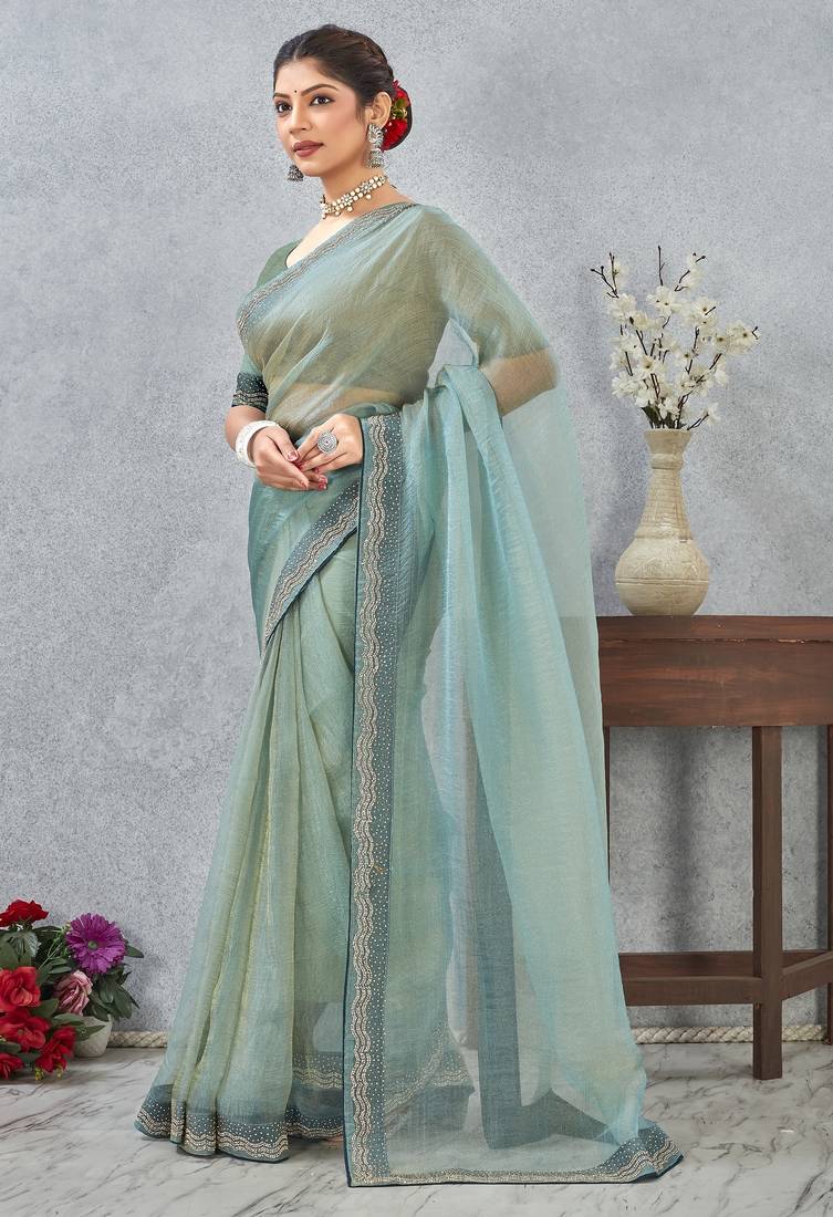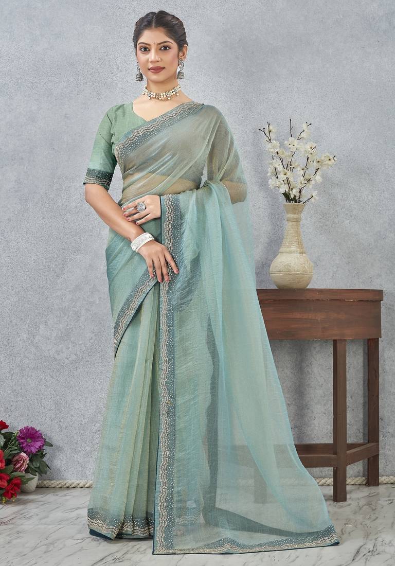 Product Name | Light Green Color Zirkon Work Border Soft Silk Blend Saree With Blouse | |