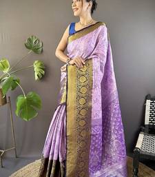 Light levender & brown color woven zari work kanjivaram tissue art silk saree