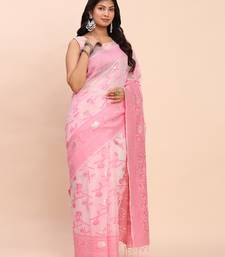 Light pink color linen cotton woven saree with blouse