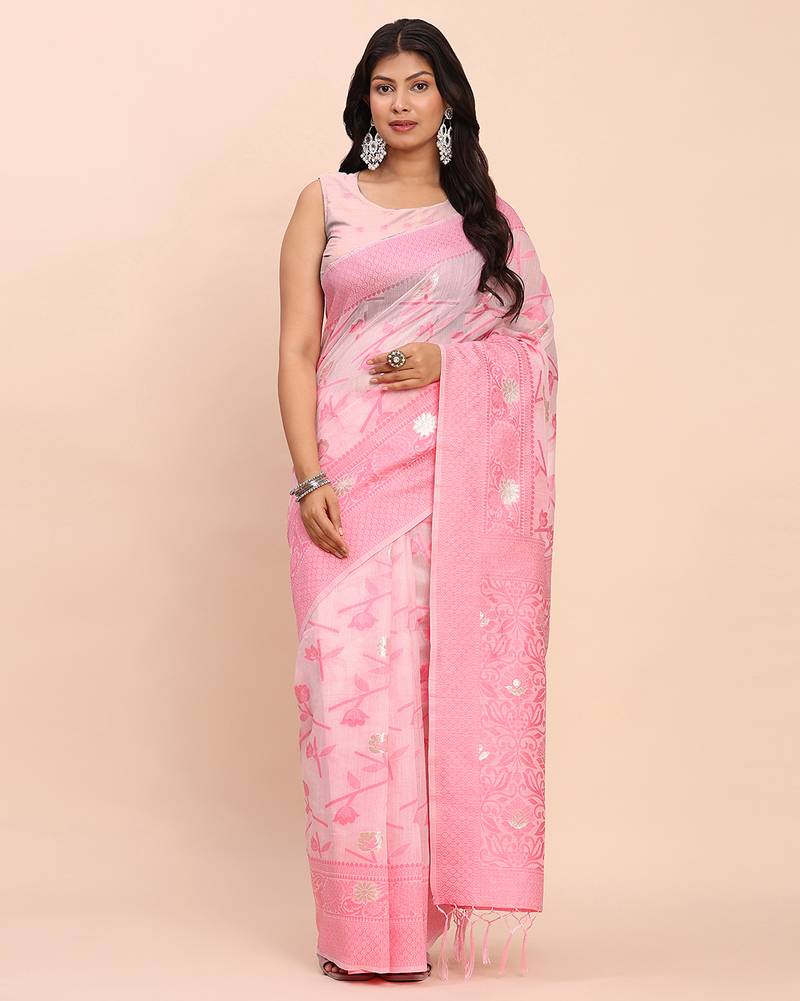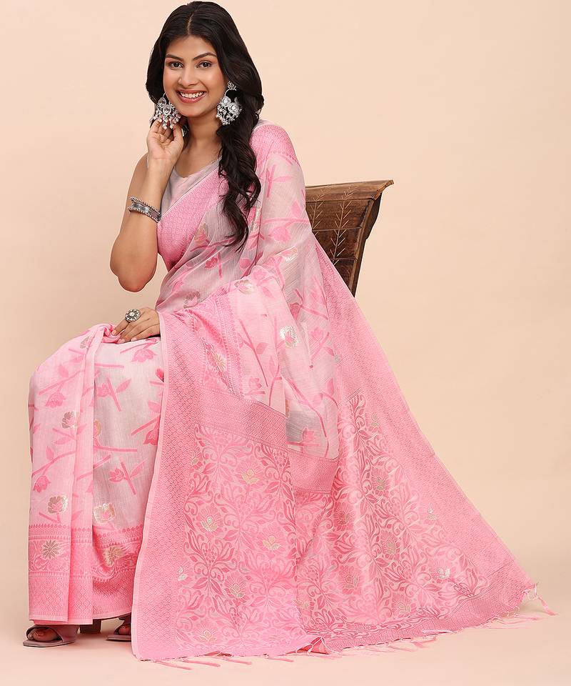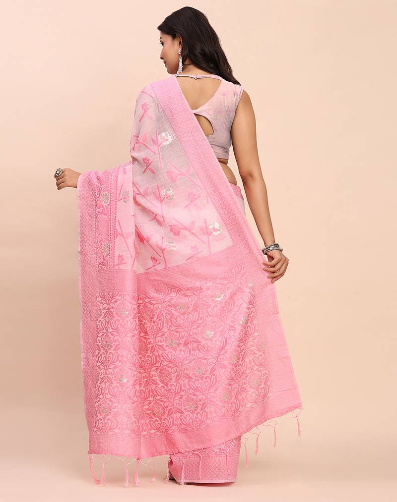 | Product Name | Light Pink Color Linen Cotton Woven Saree With Blouse | |