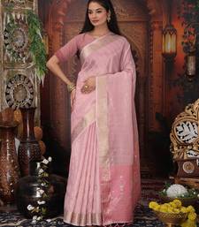 Light pink color orgenza zari woven saree with blouse