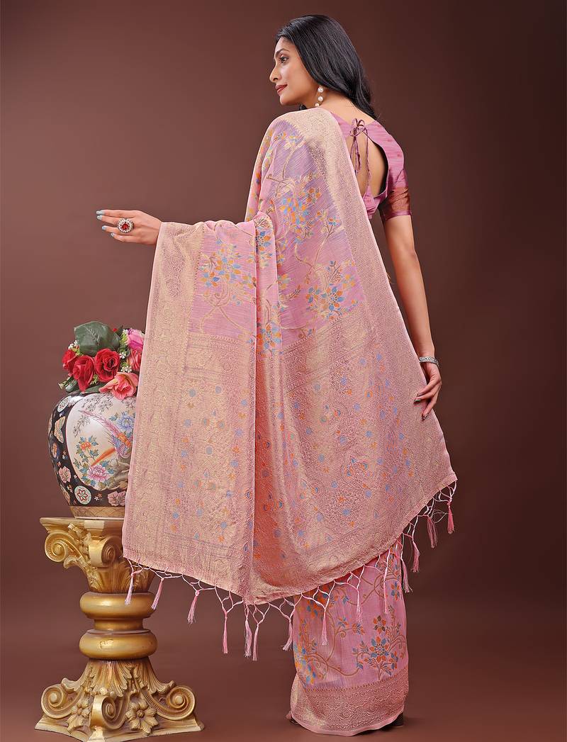 | Product Name | Light Pink Color Woven Linen Cotton Saree | |