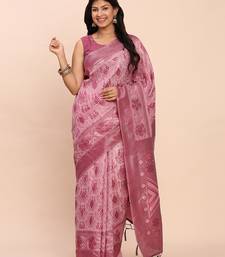 Light pink woven linen cotton saree