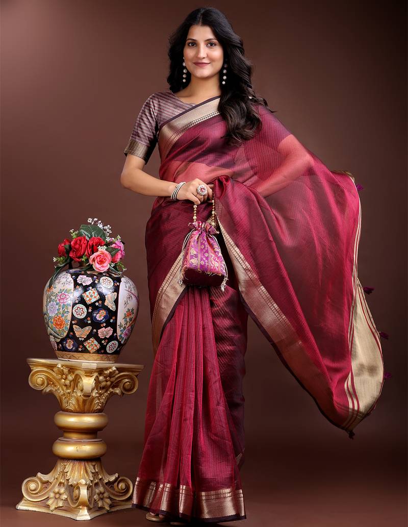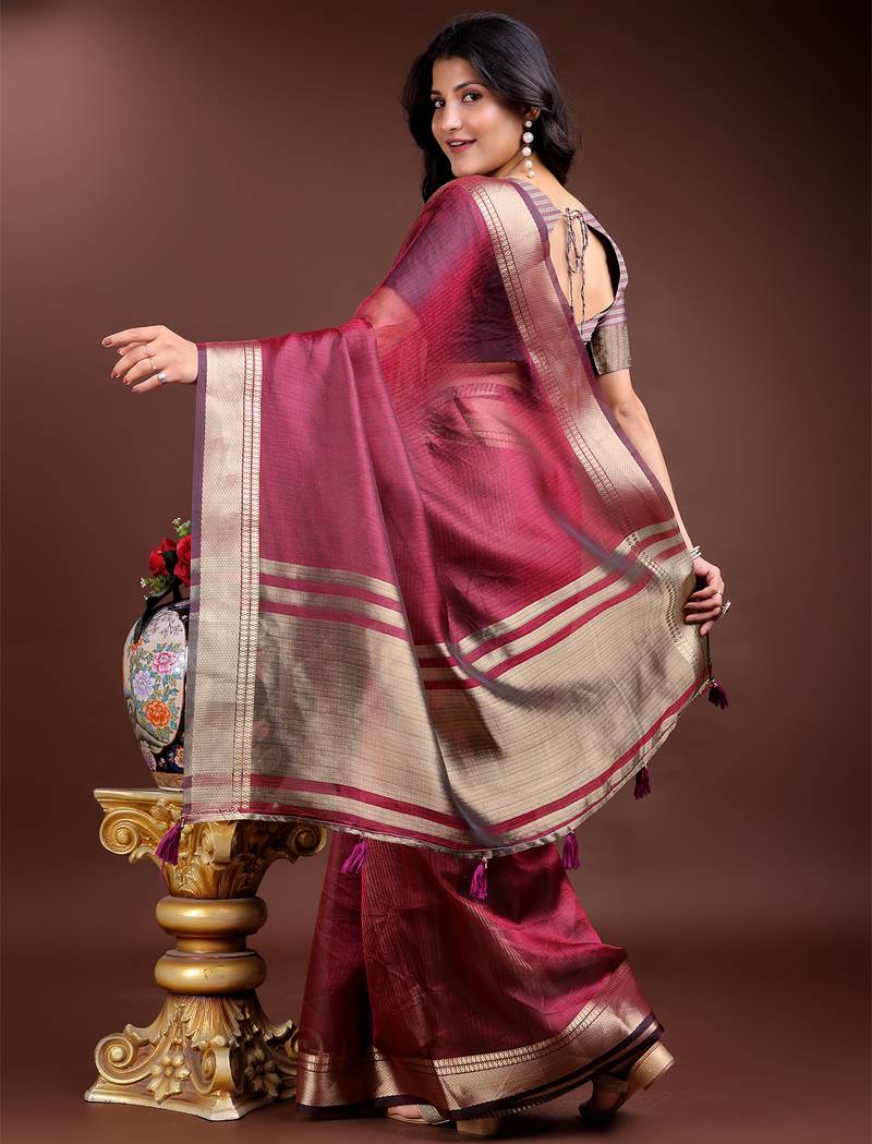 | Product Name | Magenta Color Solid Zari Border Plain Orgenza Saree | |