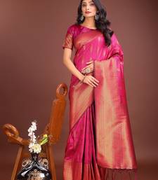 Magenta woven work banarasi art silk saree