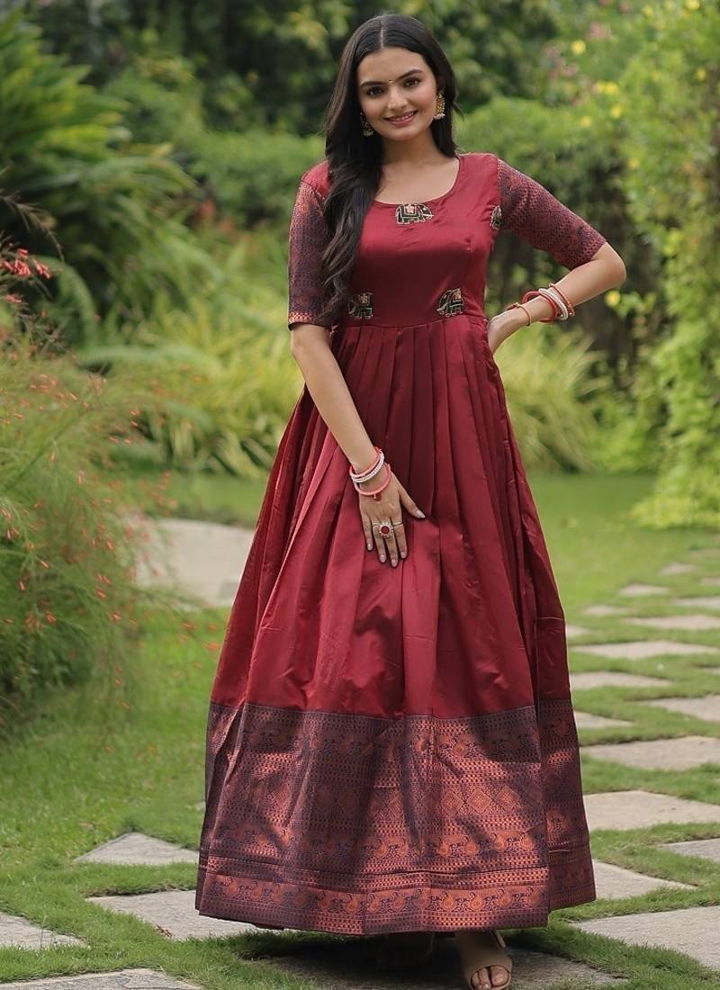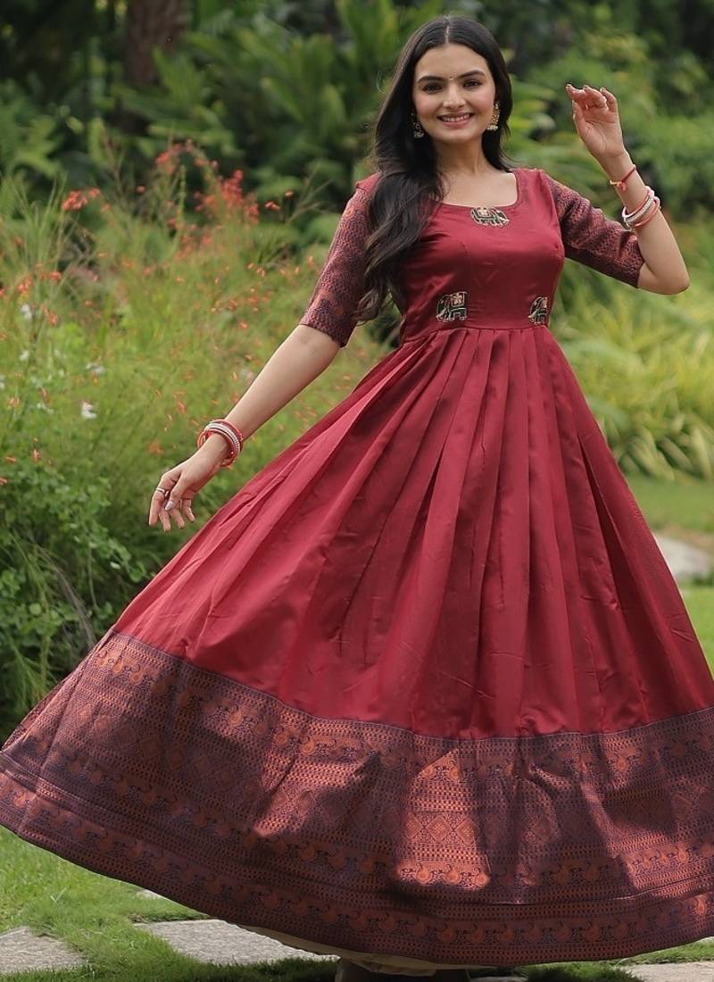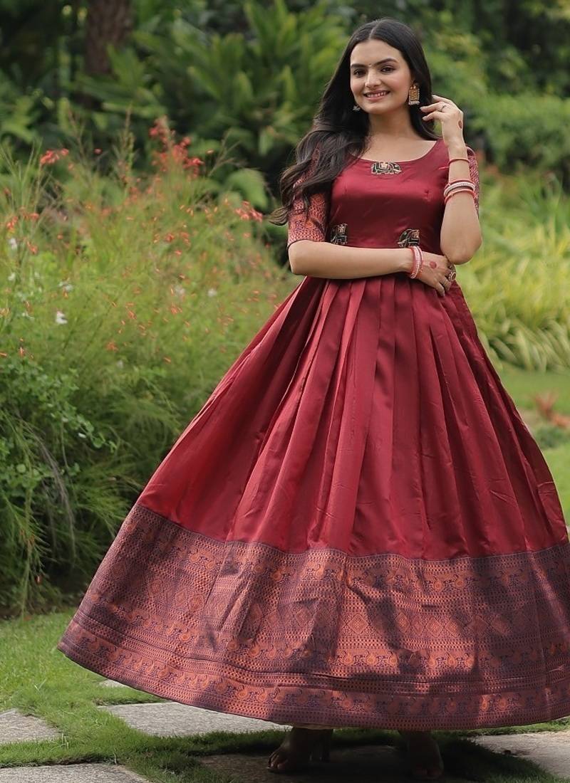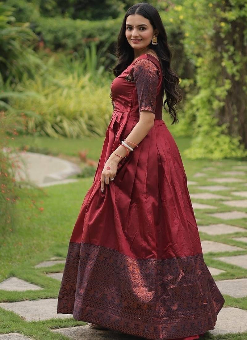 | Product Name | Maroon Color Banarasi Jacquard Weaving Gown | |