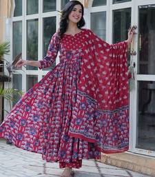 Maroon color pure cotton prinred gown pant dupatta stitched