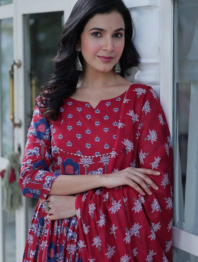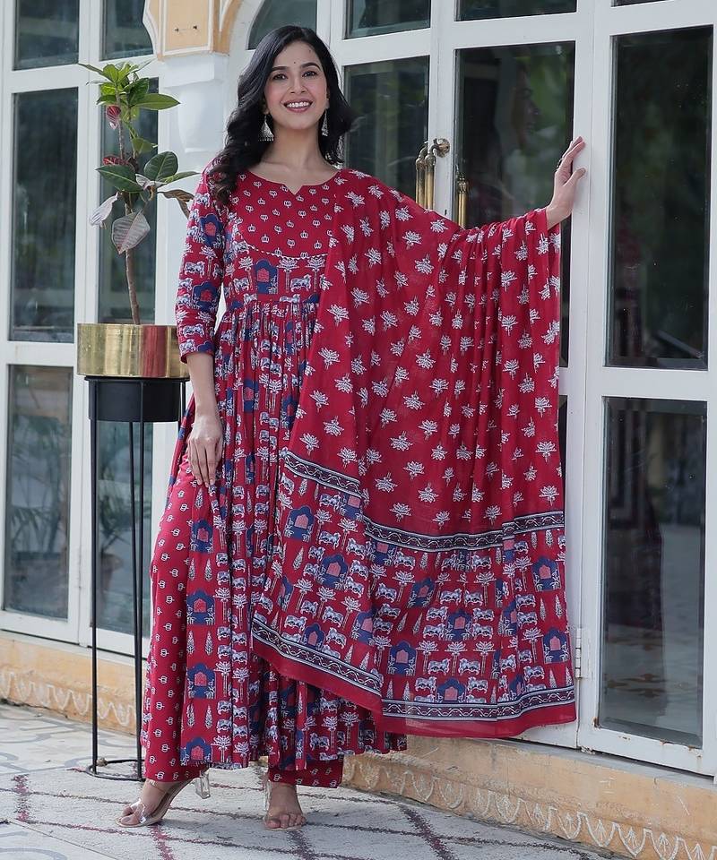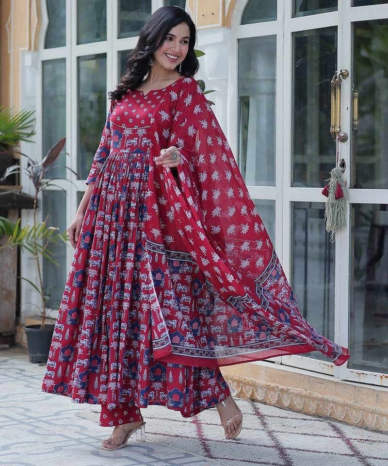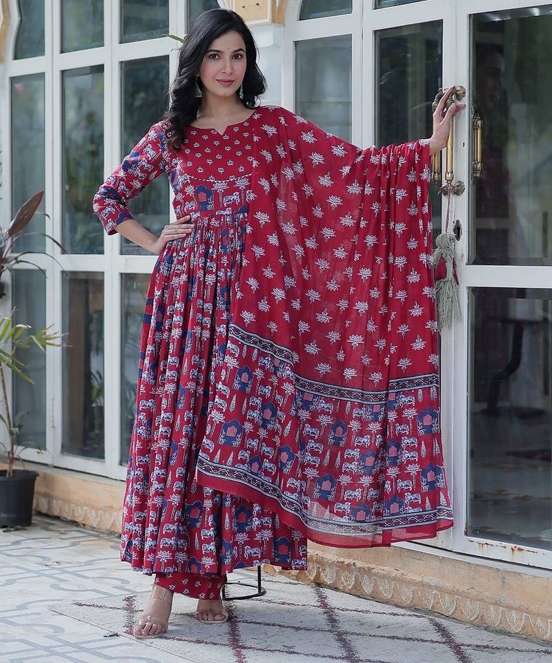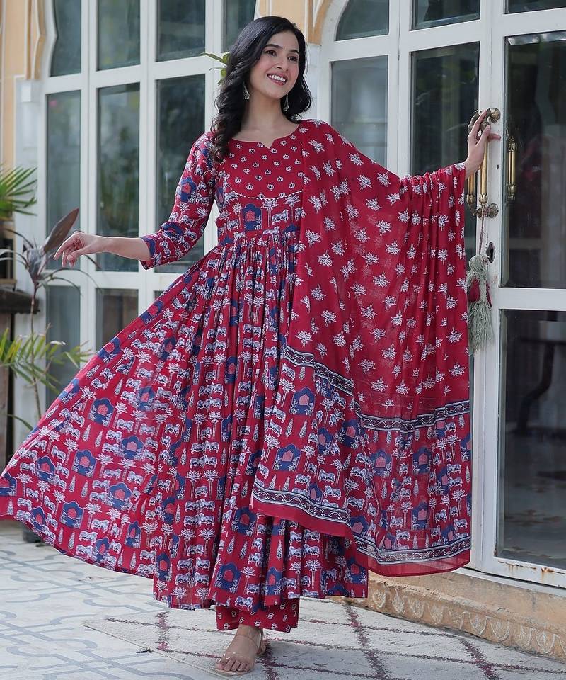 | Product Name | Maroon Color Pure Cotton Prinred Gown Pant Dupatta | |