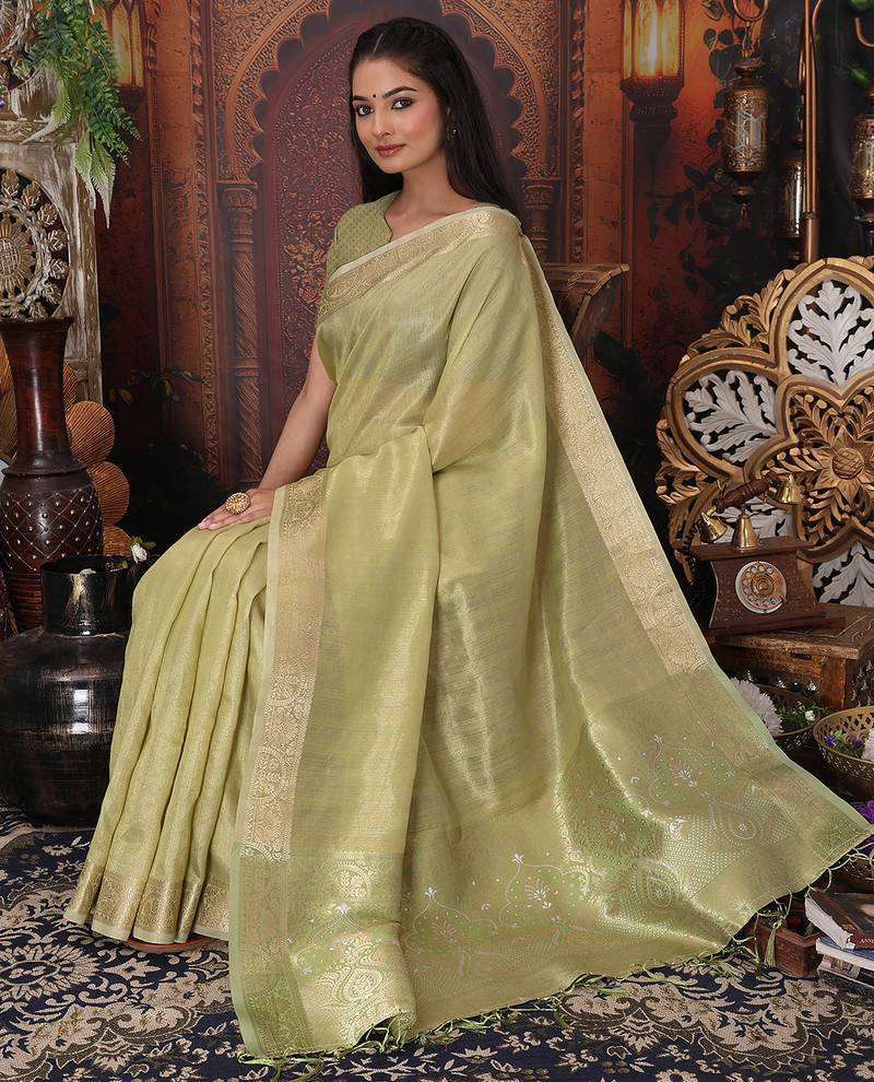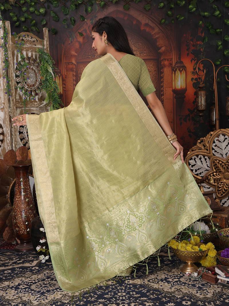 | Product Name | Mehandi Green Color Orgenza Zari Woven Saree With Blouse | |
