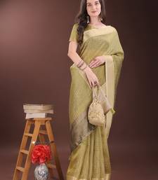 Product Name Mehandi Green Color Solid Orgenza Zari Border Saree