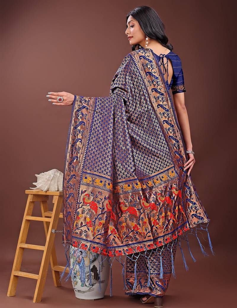 | Product Name | Navy Blue Color Woven Work Art Silk Wedding Saree | |