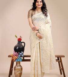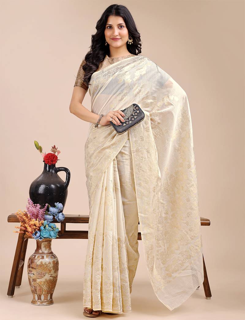 Off white color woven work cotton saree