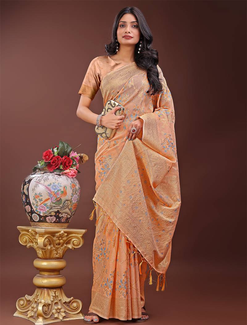| Product Name | Orange Color Woven Linen Cotton Saree | |