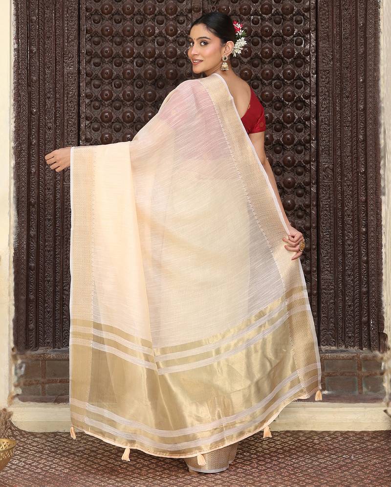 | Product Description | Linen Cotton Woven Zari Work Beautiful Women's Exclusive Casual Formal Official Party Wear Traditional South Indian Base Saree With Un Stitched Blouse |