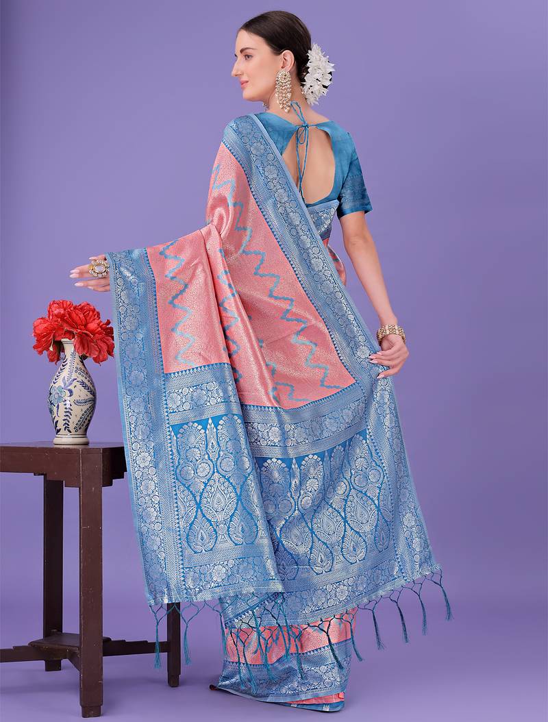 | Product Name | Peach Color Woven Lichi Art Silk Blend Saree | |