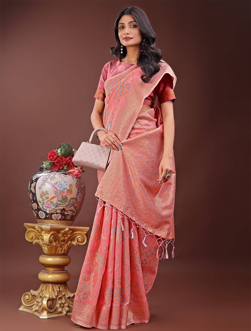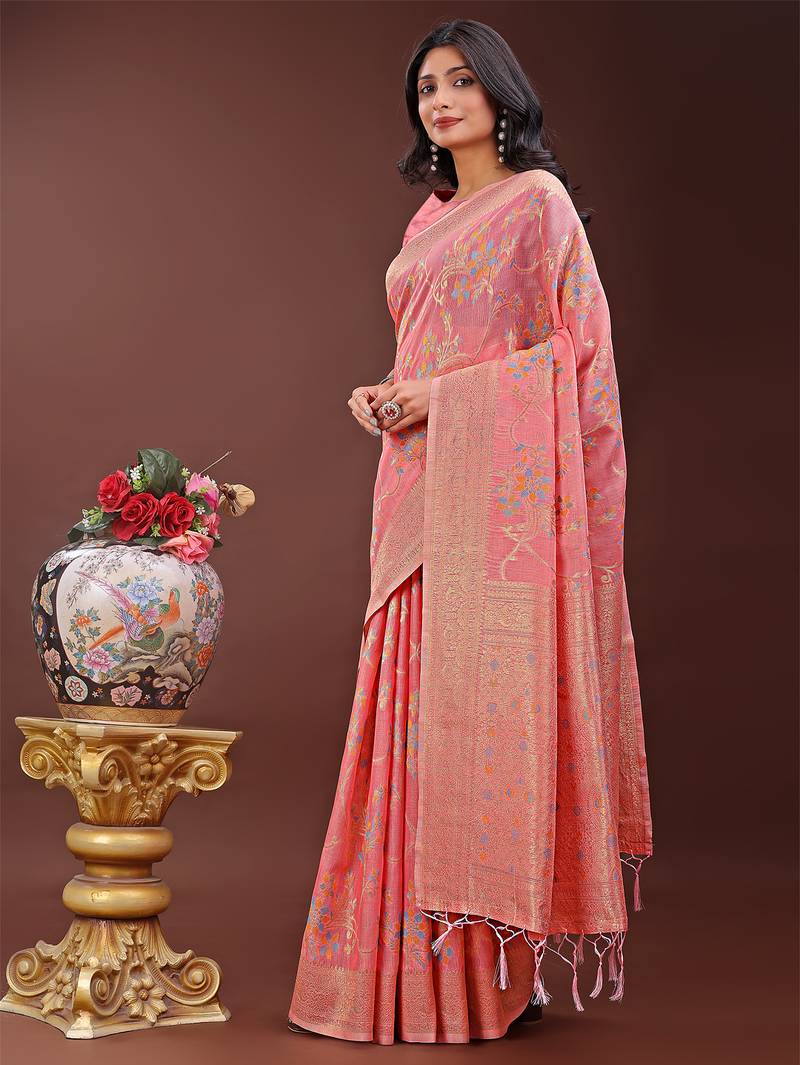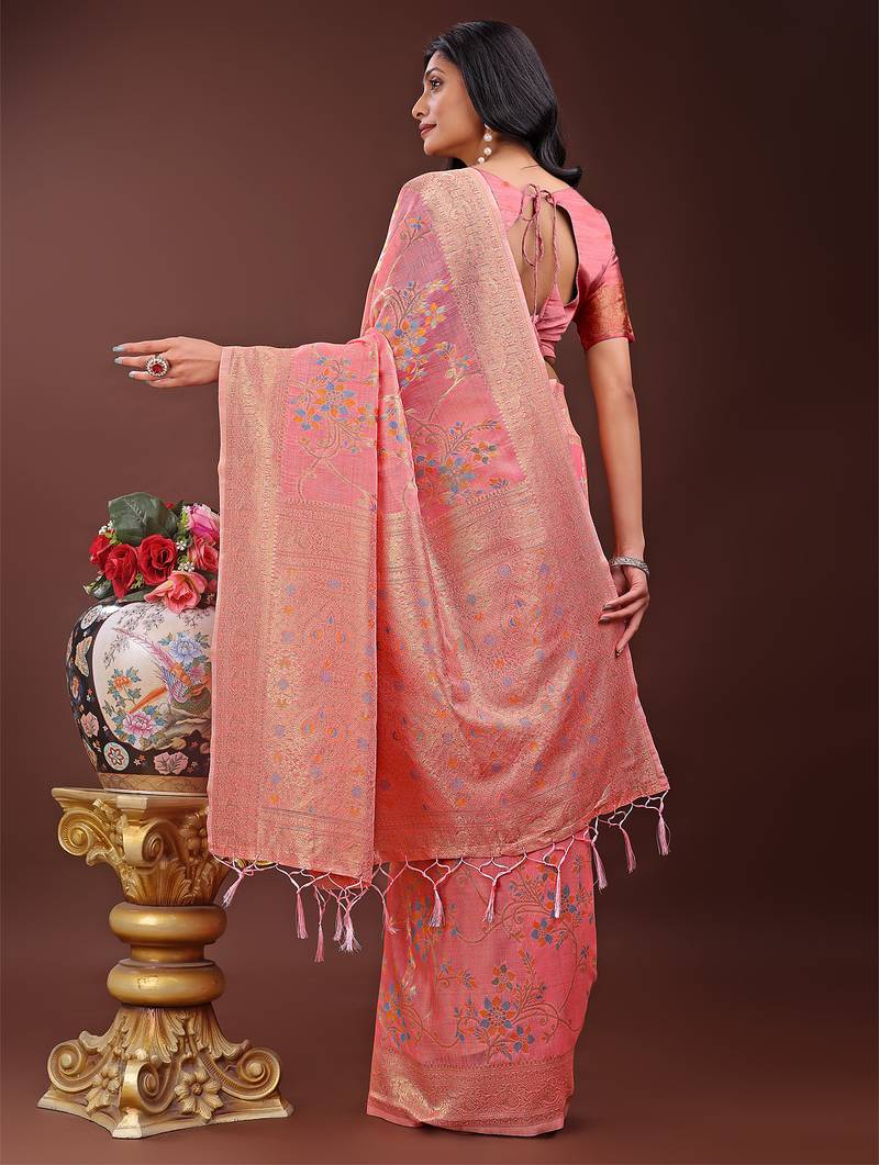 | Product Name | Peach Color Woven Linen Cotton Saree | |