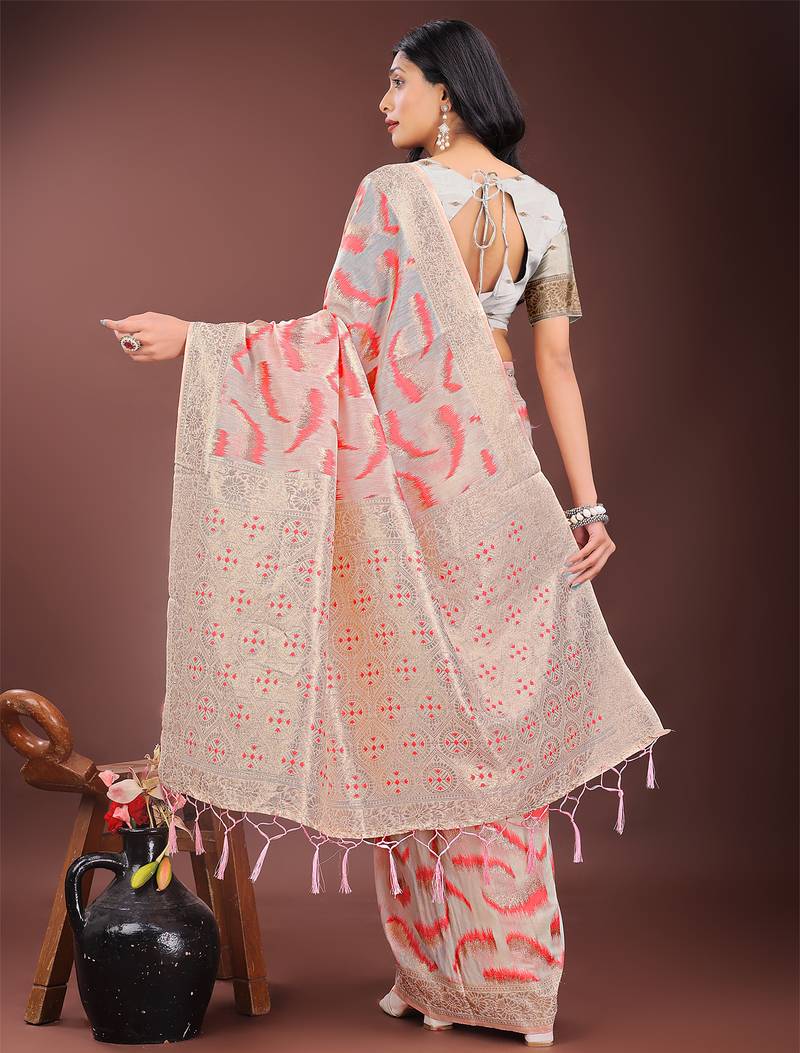 | Product Name | Peach Color Woven Work Linen Cotton Saree | |