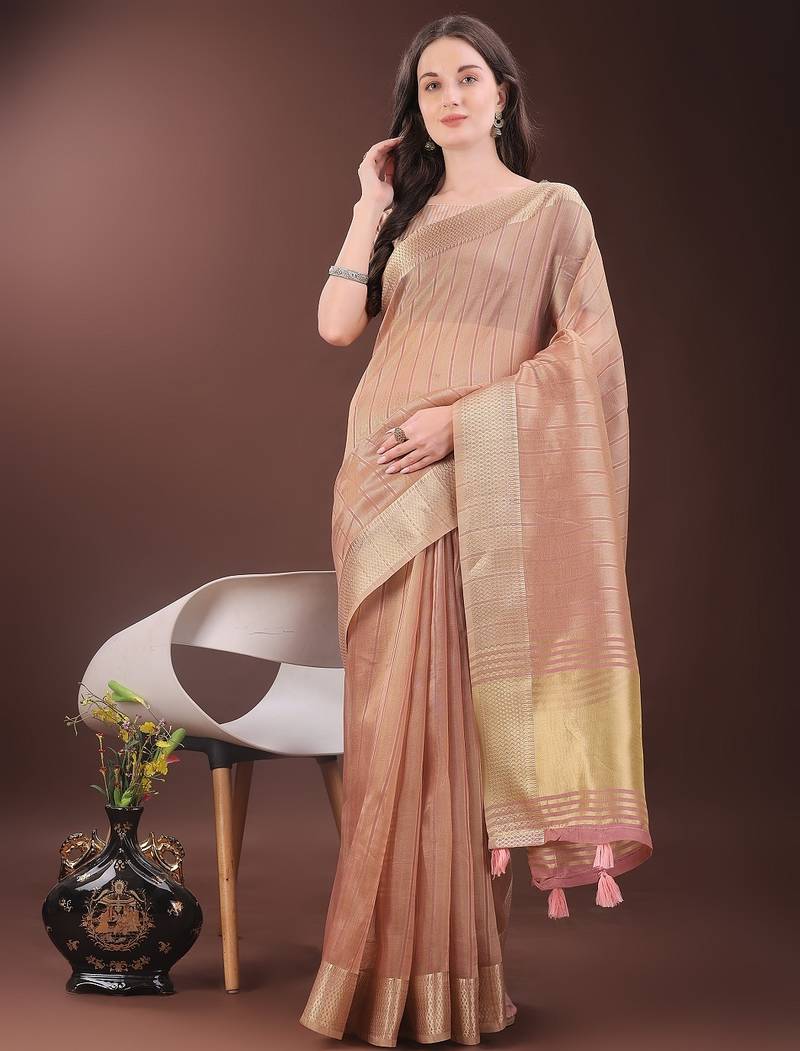 | Product Name | Peach Color Zari Border Orgenza Saree With Blouse | |