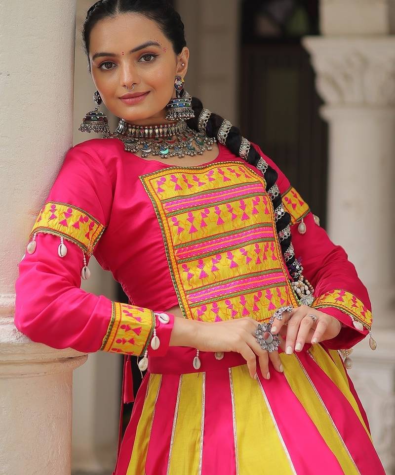 | Product Name | Perrot Color Silk Blend Mirror Work Lehenga Embroidered Blouse | |