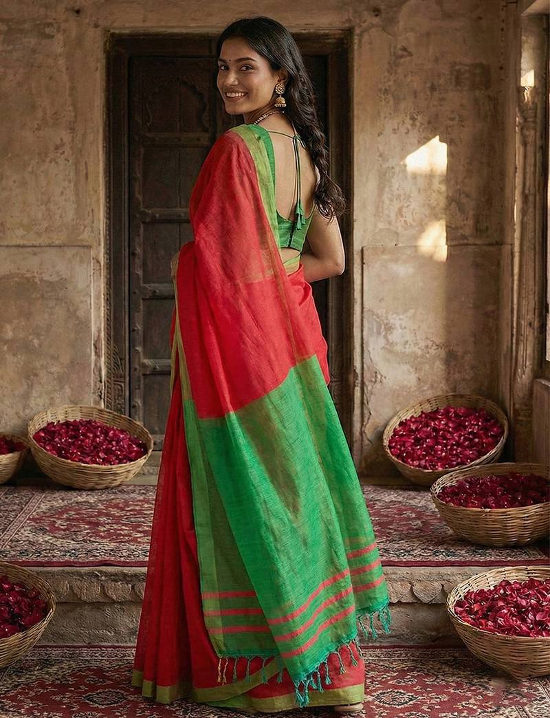 | Product Description | Pradeep Fashion Vranda Cotton Multi Colot Combination Women's Beautiful Solid Plain Casual Wear Tassels Latkan Pallu Saree With Un Stitched Blouse |