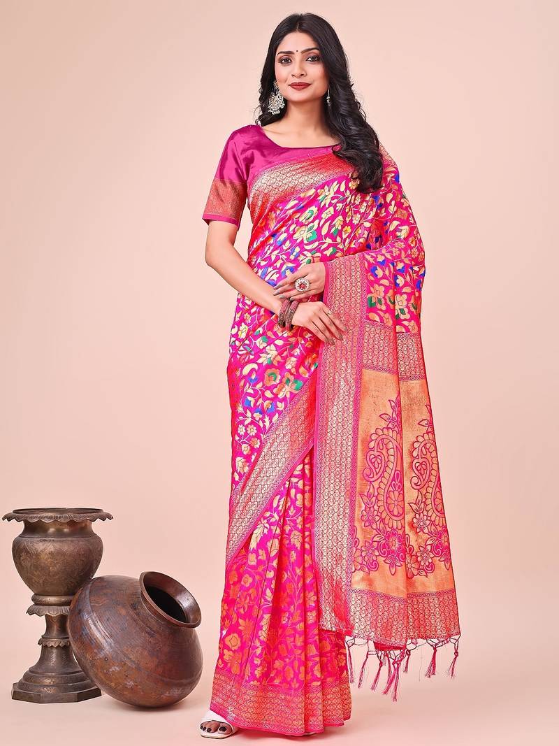 | Product Name | Pink Color Lichi Art Silk Blend Woven Work Saree | |