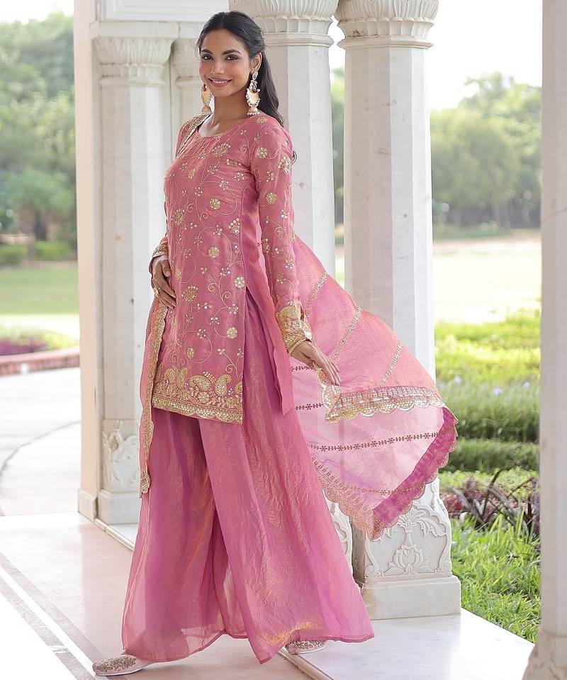 | Product Name | Pink Color Sequins Work Fendi Silk Designer Readymade Top Sharara Dupatta | |
