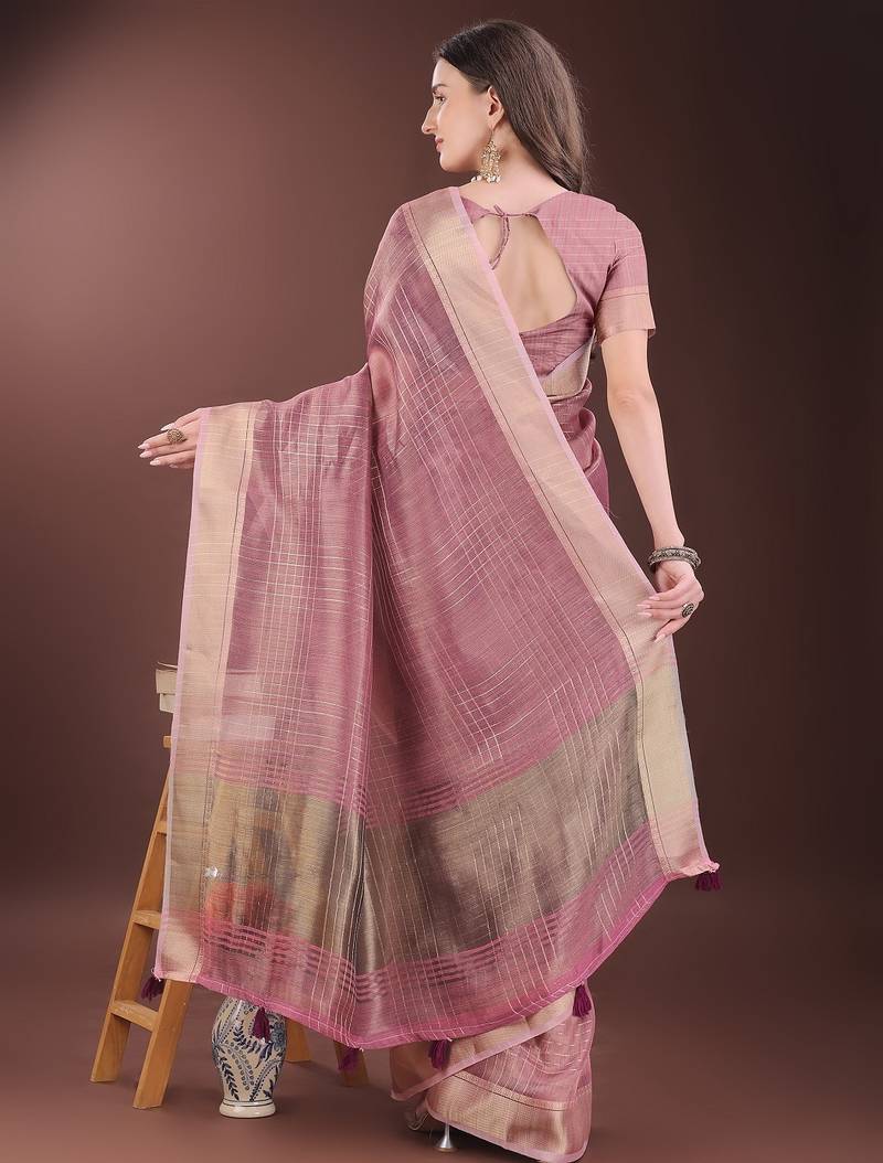 Product Name Pink Color Solid Orgenza Zari Border Saree